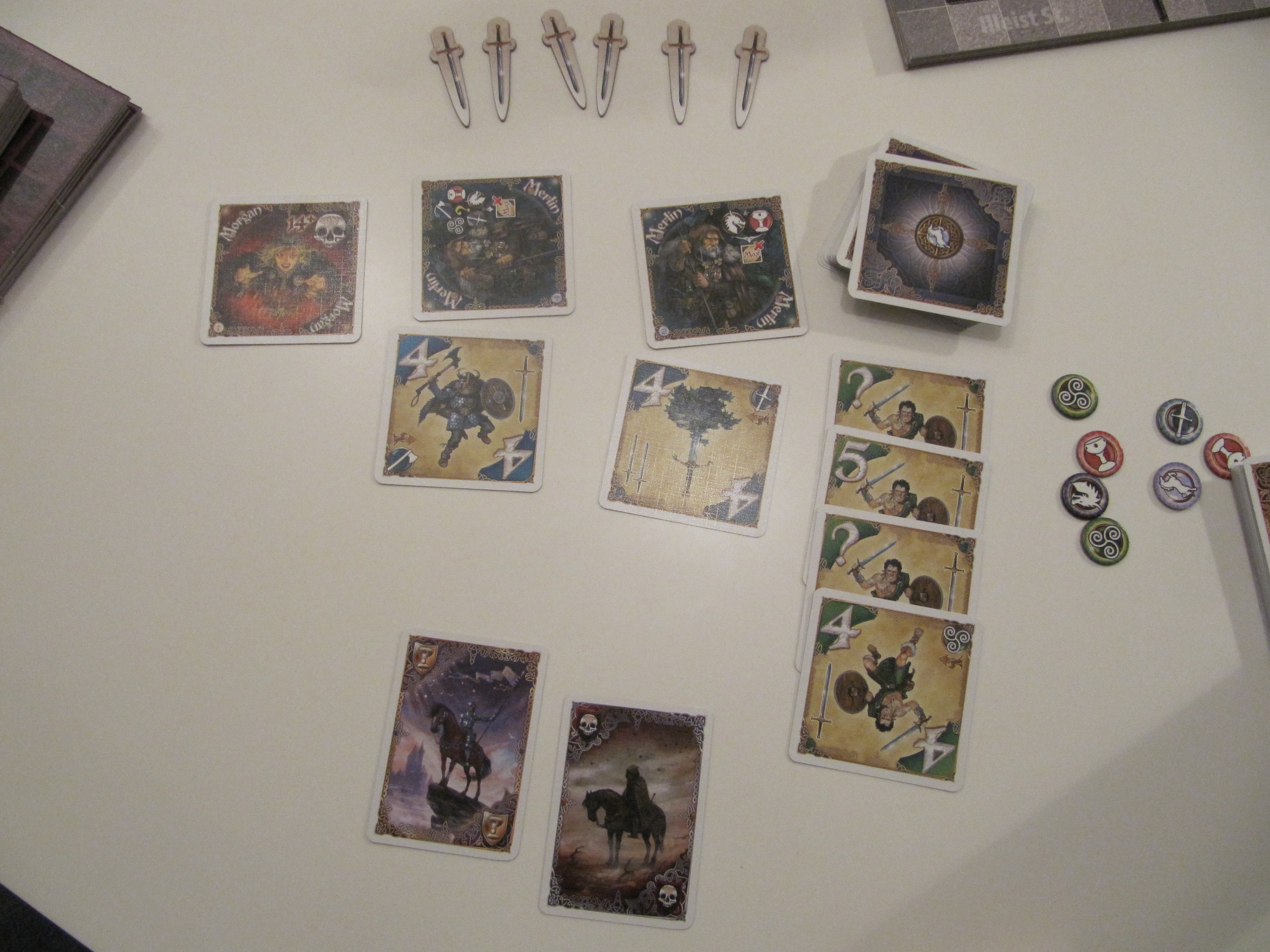 Shadows over Camelot: le jeu de cartes est donc assez simple: on se répartit la tâche entre joueurs afin de bien compter les cartes des différentes quêtes et lorsque la somme est bonne, on part en quête.