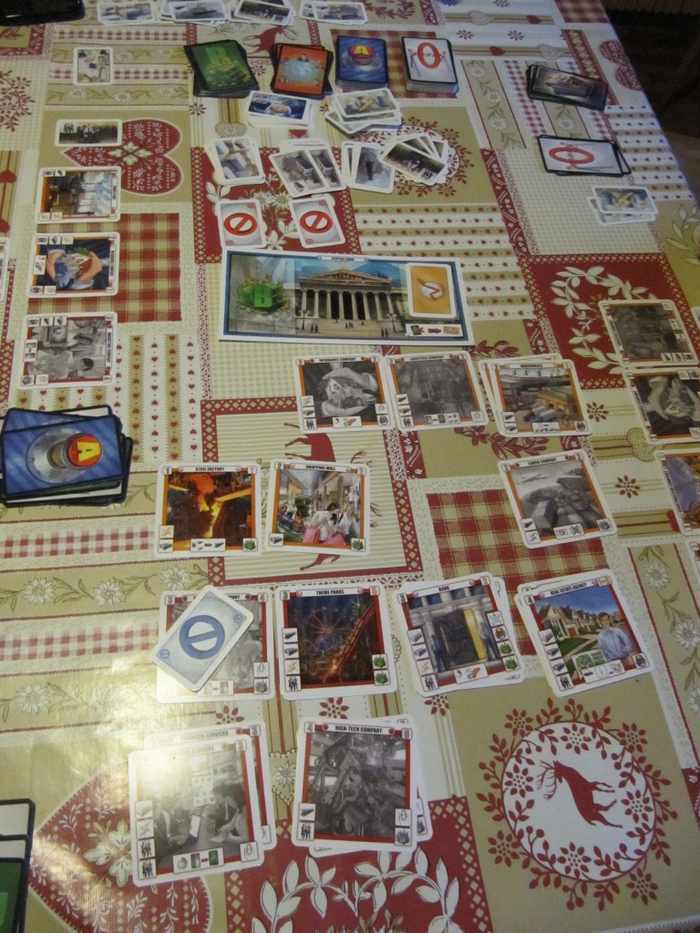 1) Retirer une carte opposition permettant de pouvoir acquérir la carte précédemment bloquée et d’en bloquer une autre.  C’est une idée assez sympa et on se prend au jeu de savoir ce que les autres recherchent afin de pouvoir mieux les bloquer dans leur progression.  Sympa, mais cette recherche s’avère fort difficile et la dynamique créée ici retombe vite à plat en se voyant modifier les cartes bloquées au hasard et sans réel enjeu…