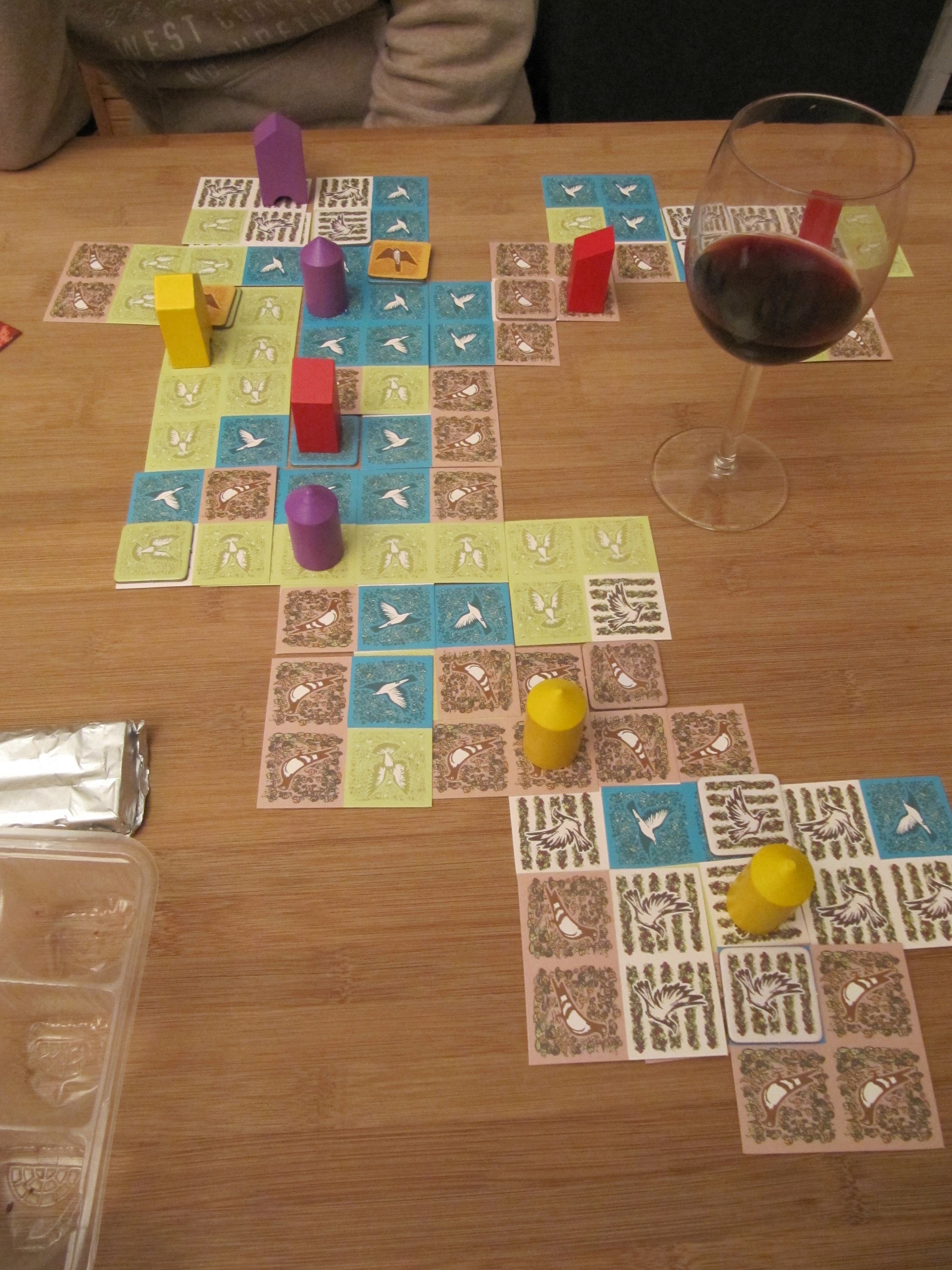 Ici aussi, on devra placer des pions (pigeonnier) sur les cartes formant le plateau central. C’est eux qui nous feront gagner les points en fin de partie. Une partie n’est d’ailleurs pas très longue et l’explication des règles est également assez brève. (2 avantages non négligeables)