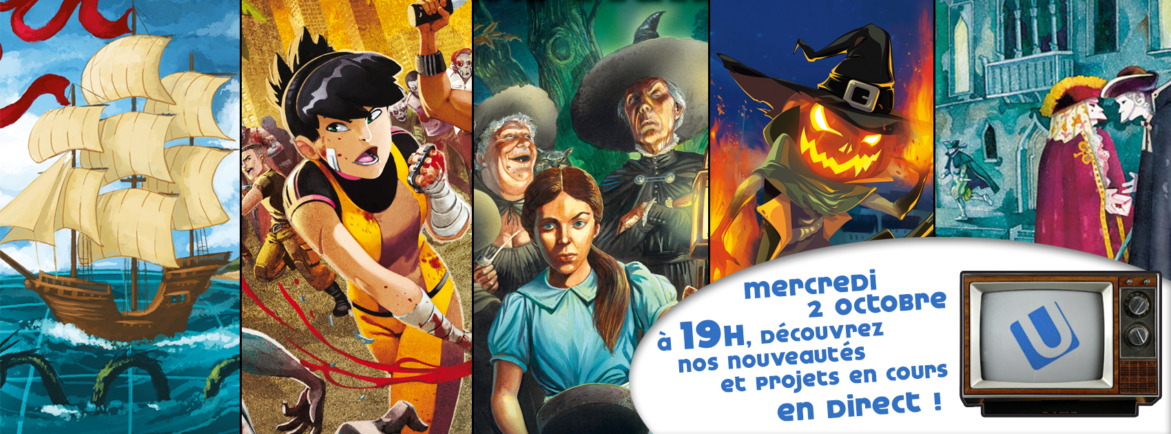 IELLO a une actualité très riche en cette fin d’année… C’est donc le parfait moment pour organiser une nouvelle session en vidéo live ! Ça se passera ce mercredi, à partir de 19h, et ce sera l’occasion de présenter leurs sorties récentes (Testament, Smash Up Même pas Mort) ou à venir (Les Sorcières, Intrigues à Venise, Steam Park, King of Tokyo Halloween, Neuroshima Hex 3.0, Huit minutes pour un Empire, etc.), ainsi que leurs projets en cours (Zombies 15’, etc.). Iello répondra volontiers aux questions que les joueurs souhaiterons leur poser via chat (sur UStream et Facebook).