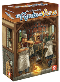 La Route du Verre est un jeu de cartes action simultané mixé à une gestion particulière de ressources liée à l’achat de bâtiments.