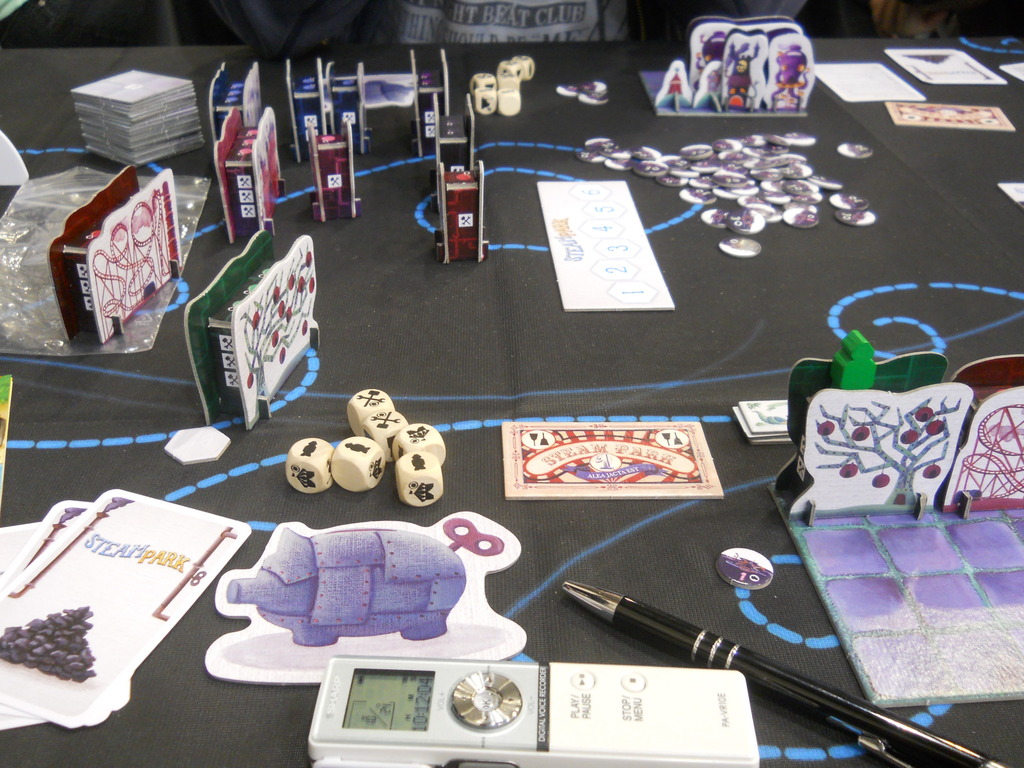 Steam Park s’appuie sur un thème original et possède un matériel abondant. Même s’il ne colle pas vraiment à la réalité, il n’en reste pas moins un jeu amusant et d’un niveau de difficulté abordable aux joueurs occasionnels. Il plaira aux joueurs qui veulent un peu d’originalité. Steam Park m’a donné la même sensation que le fameux Galaxy Truckers…