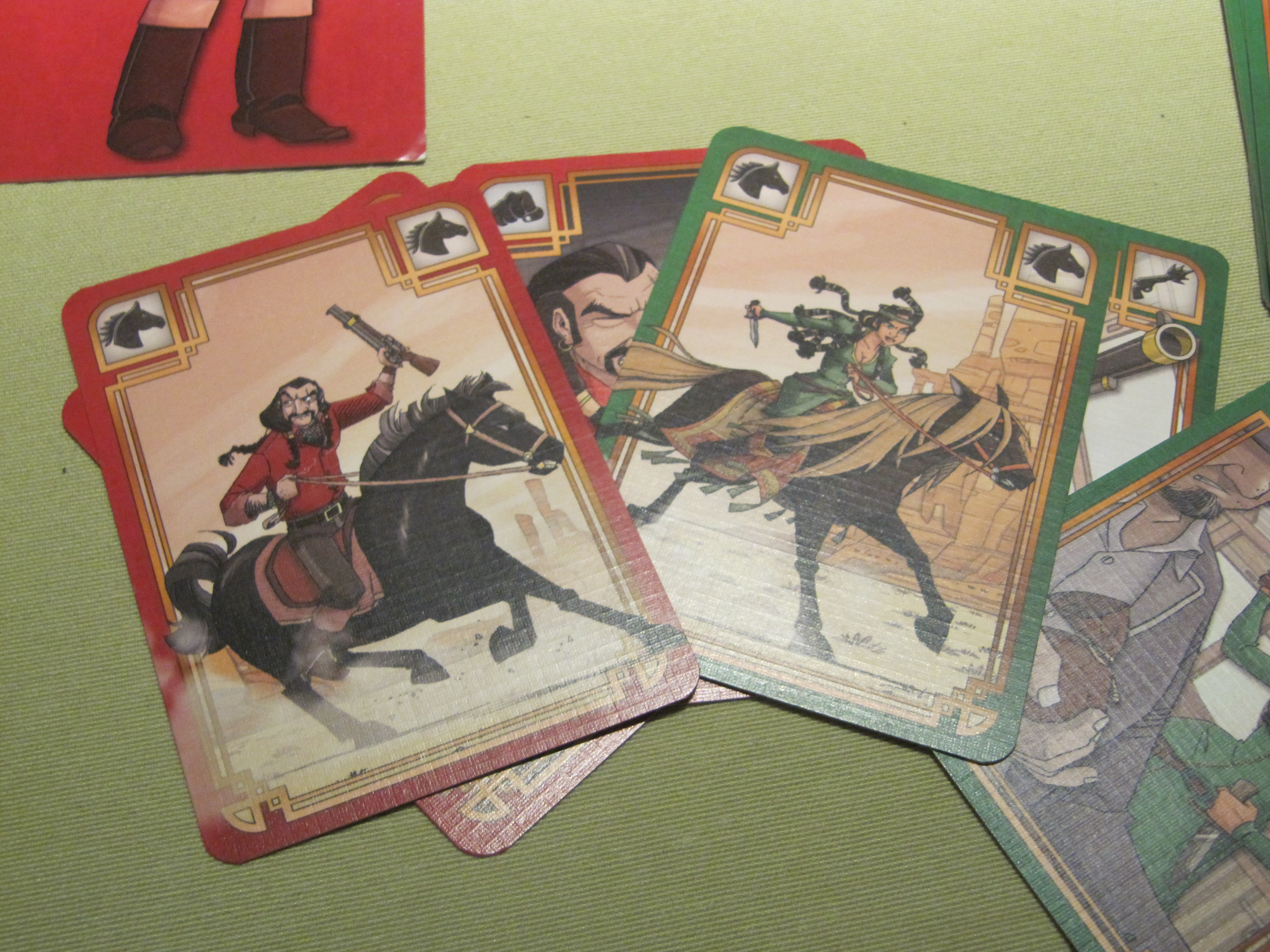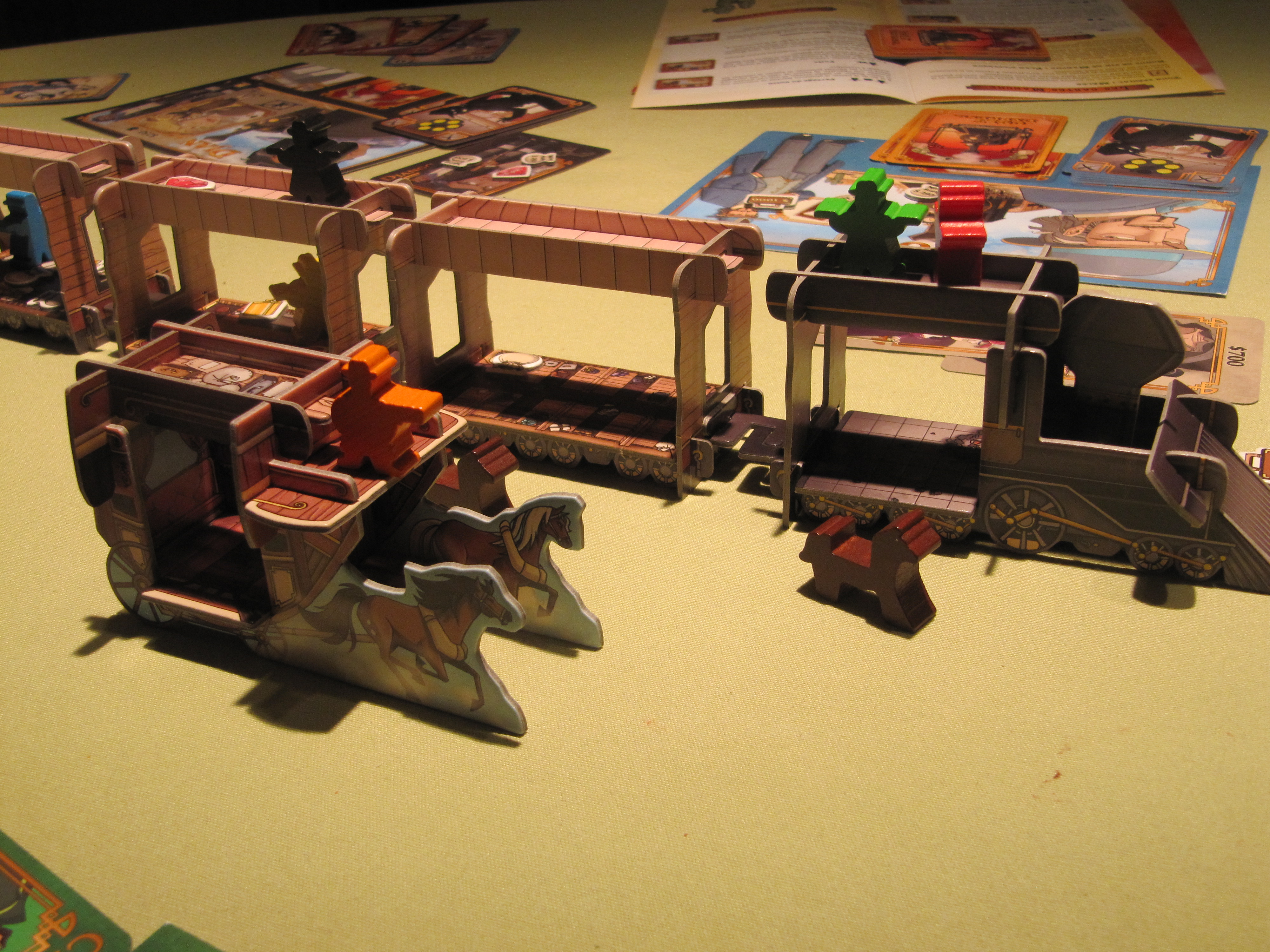 cheval, tout ça avec votre otage. Et ce n’est pas fini, une fois sur votre cheval avec votre otage, il faudra sauter dans l’train… On est vraiment des super cowboys 😀 C’est pas très thématique et ça embrouille un peu les règles.