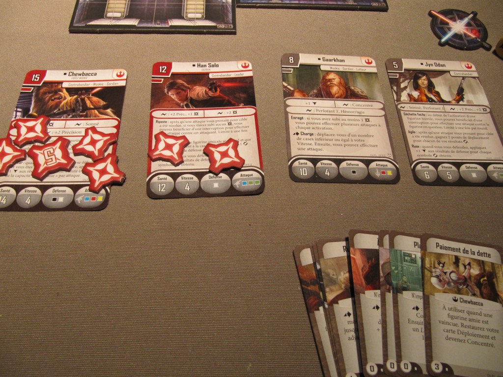 Dans le but de garder le prix du jeu abordable (Environ 95 Eur tout de même!), les éditeurs ont eu la politique, discutable, d’inclure dans le jeu de base Star Wars Assaut sur l’Empire des jetons en carton représentant les figurines des personnages annexes qui apparaissent au détour de l’une ou l’autre mission.