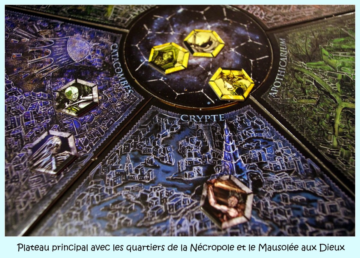 Dans le mode complet les phases vont ainsi se succéder jusqu’à ce que les héros réussissent à remplir suffisamment de missions pour emporter la victoire dans les 5 tours impartis, à moins bien évidement que le vilain maître des jeux ne l’emporte ! En effet ce dernier sera vainqueur s’il conserve ses 3 dieux jusqu’à la fin du jeu, s’il envahit la Nécropole (cette dernière est protégée par une porte que ses invocations vont affaiblir jusqu’à destruction)ou tout simplement en tuant tous les héros lors d’un tour d’exploration.