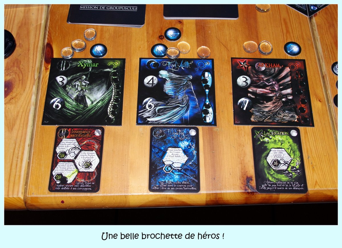 s’amuser à jouer avec ou contre ses amis) en jeu complet ou réduit, mais aussi pour ceux hermétiques à l’incarnation d’un personnage à un jeu purement tactique, bref il y en a pour tous les goûts et il y aura du renouvellement de jeu d’une partie à l’autre. Les héros sont différenciés (sorciers, guerriers, assassins) et possèdent des compétences et sorts : du classique mais ça marche toujours bien.