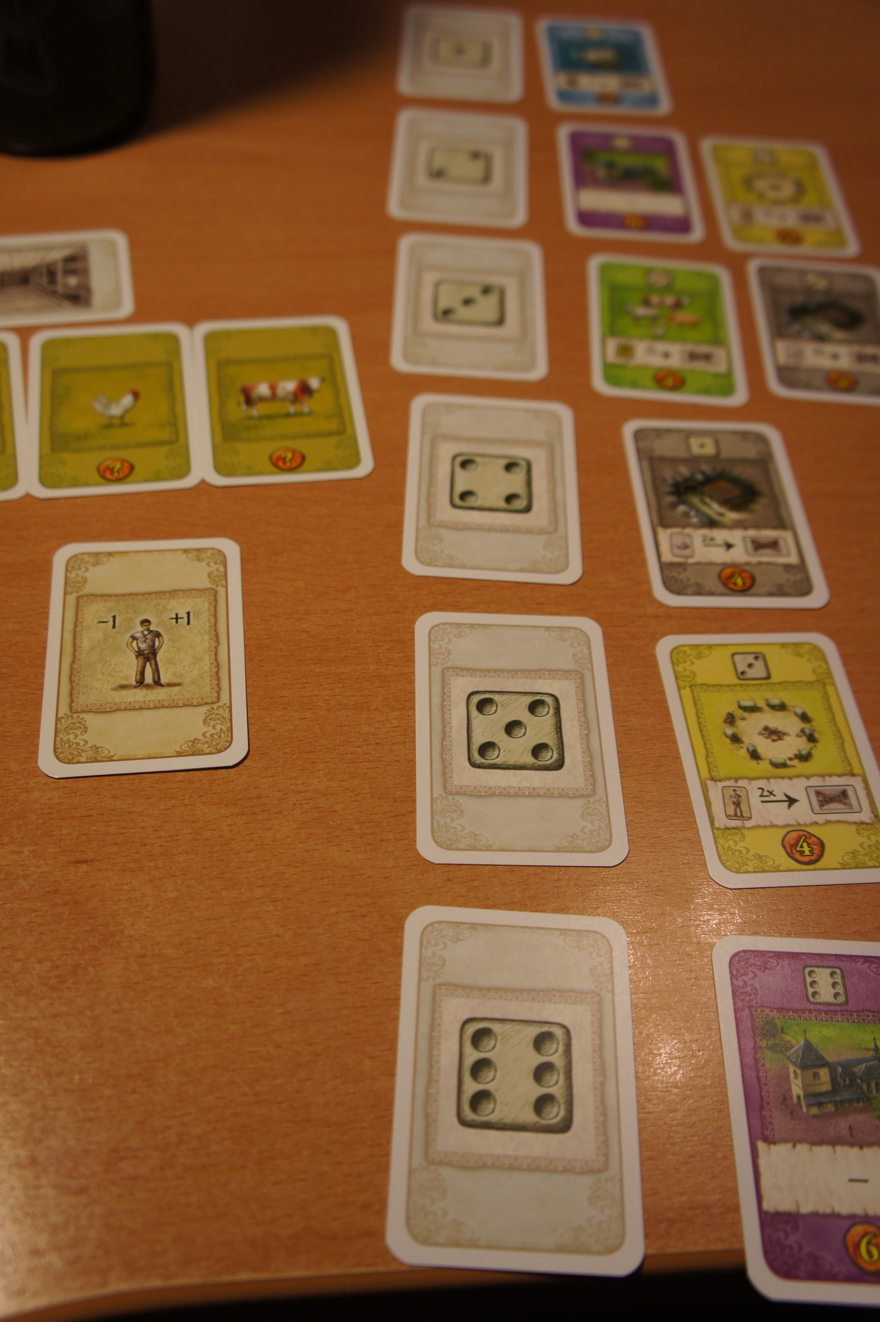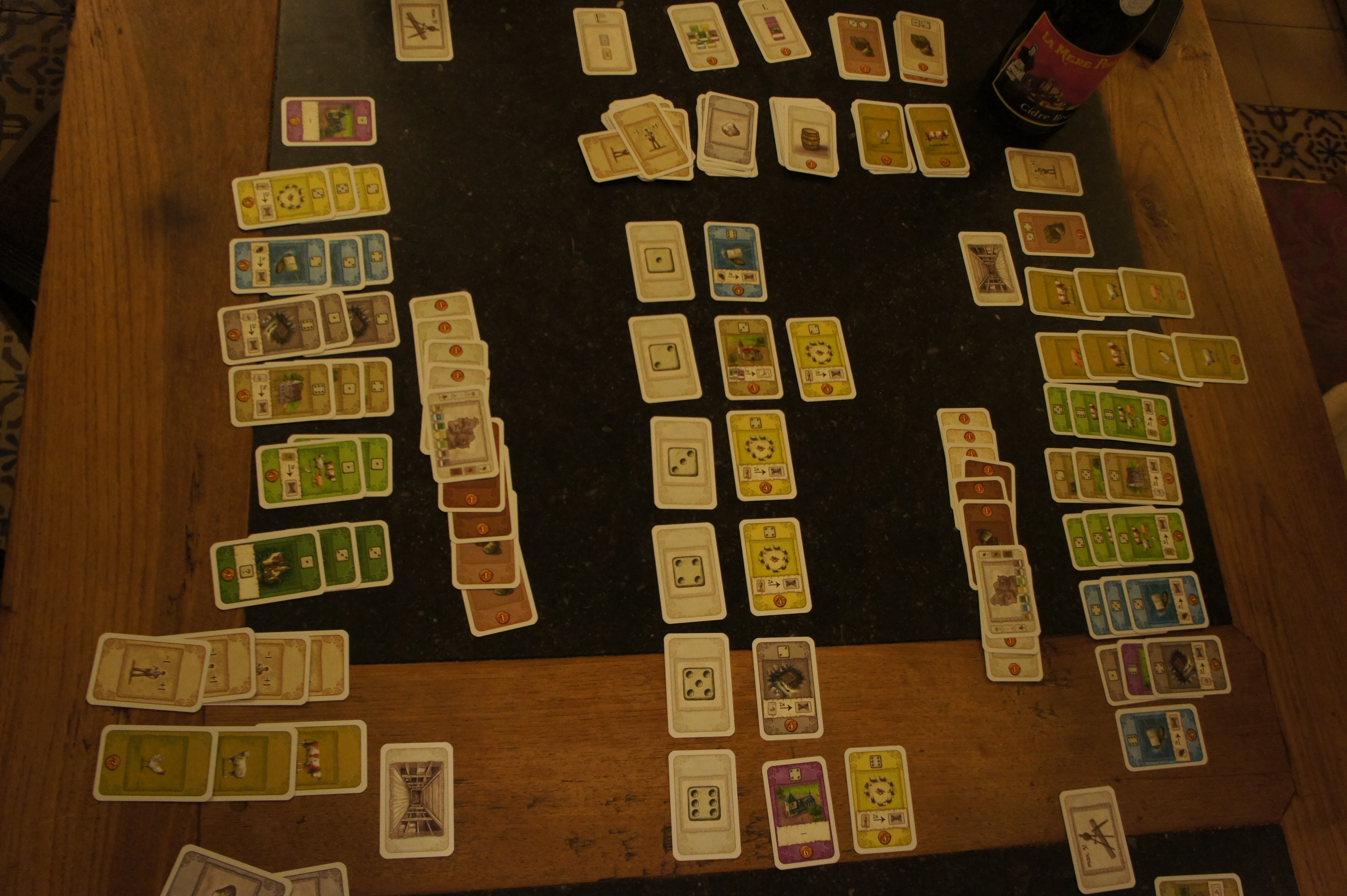 On regrettera un manque d’effet crescendo qui donnera une impression d’un jeu un peu plat et légèrement répétitif ainsi qu’un manque de stratégie au profit d’un jeu plus tactique et où, au final, tous les joueurs font la même chose: profiter au mieux de ses cartes pour collectionner des triplettes de bâtiments de même couleur en essayant d’être le premier sur chacune des couleurs. D’un autre côté, le génie de Feld s’est une nouvelle fois montré en nous livrant une version cartes d’un jeu de dés avec des dés sur des cartes 🙂 tout en étant original, intelligent et offrant de vrais choix. Vraiment bien pour un petit jeu de cartes qui peut s’emporter partout.