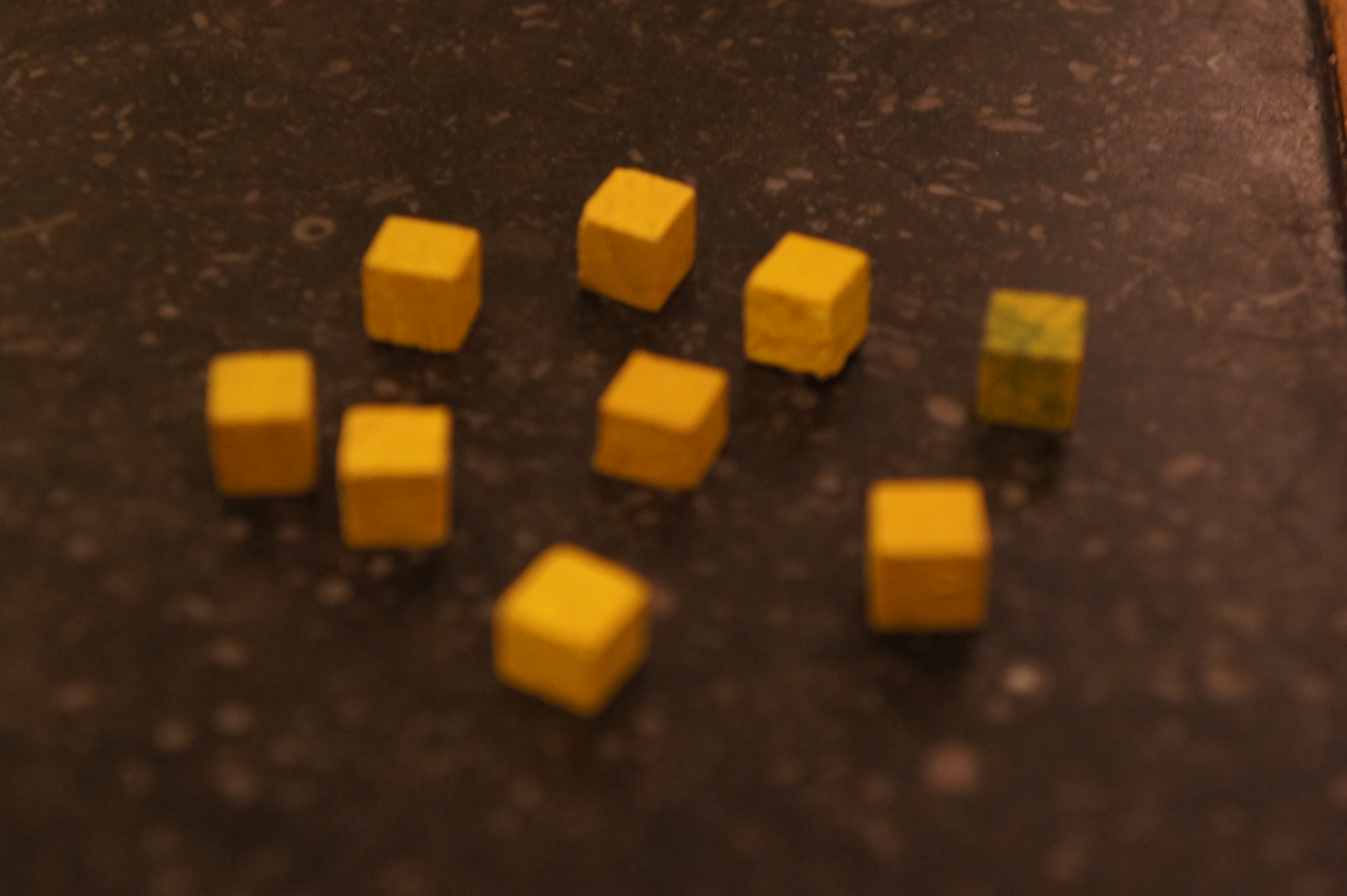Le reste est par contre très vieillot : les illus du plateau sont très moches, les unités sont marquées aux couleurs des joueurs grâce à de minuscules plastiques colorés transparents qui s’insèrent dans les pièces en plomb : bonjour la clarté du jeu et les manipulations de malade.  Il arrive bien souvent que ces plastiques collent aux doigts puis tombent par terre : bonjour pour les retrouver !  Le minerai est représenté par du vulgaire gravier du plus moche effet.  A ce propos, les règles le soulignent non sans humour : « dans la boite, plus de 50 éclats de minerais qui peut être confondu, de loin, avec du vulgaire gravier » 🙂