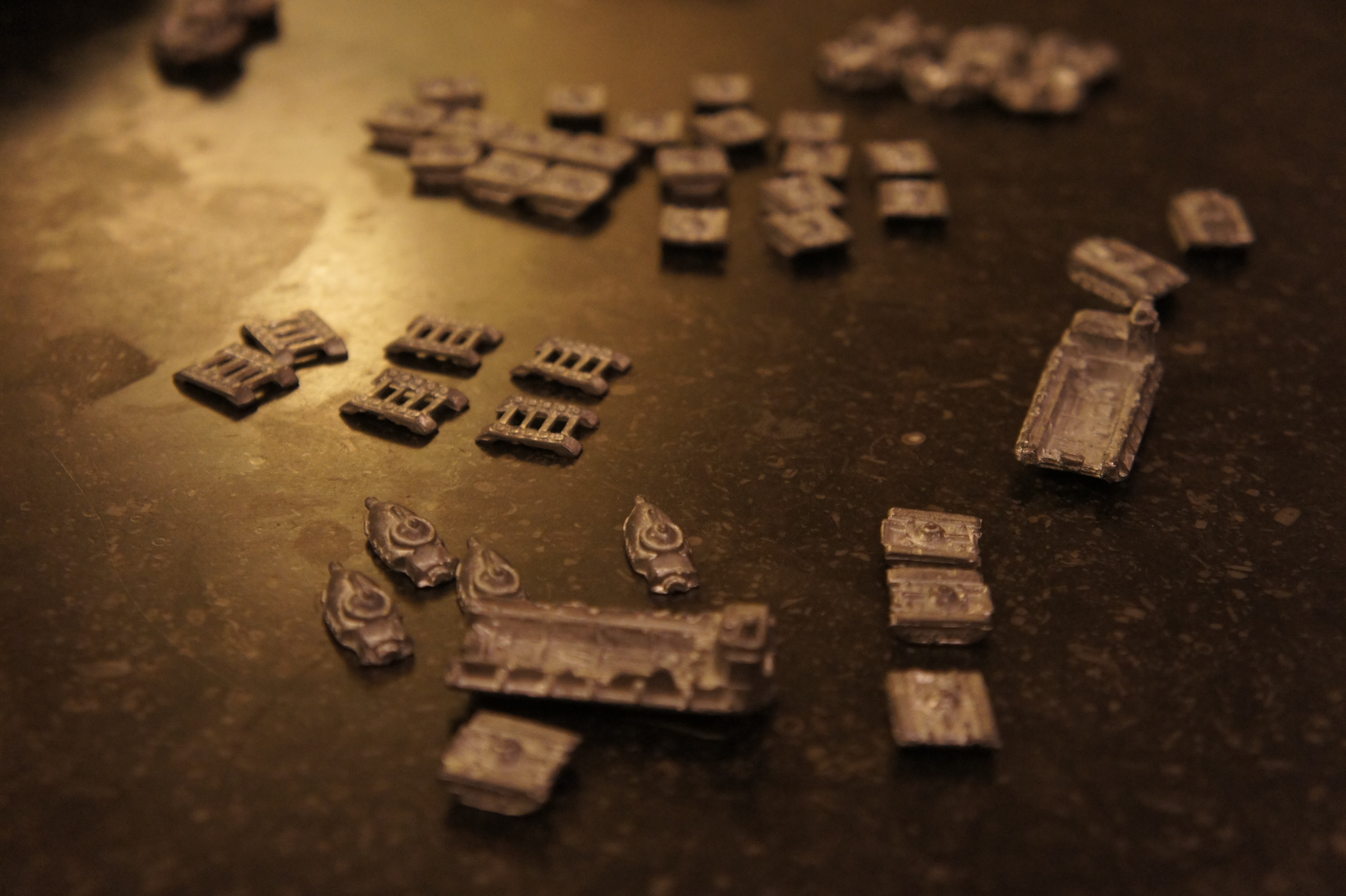Toutes ses pièces sont en plomb et sont super bien détaillées : les petits et grands chars, les engins crabes, les « pondeuses météo », les pontons, les barges, les navettes, les SONY DSCastronefs, les tourelles : tout est en plomb de très bonne qualité.  C’est magnifique et ça ne se fait plus à l’heure actuelle sauf à des prix exorbitants.