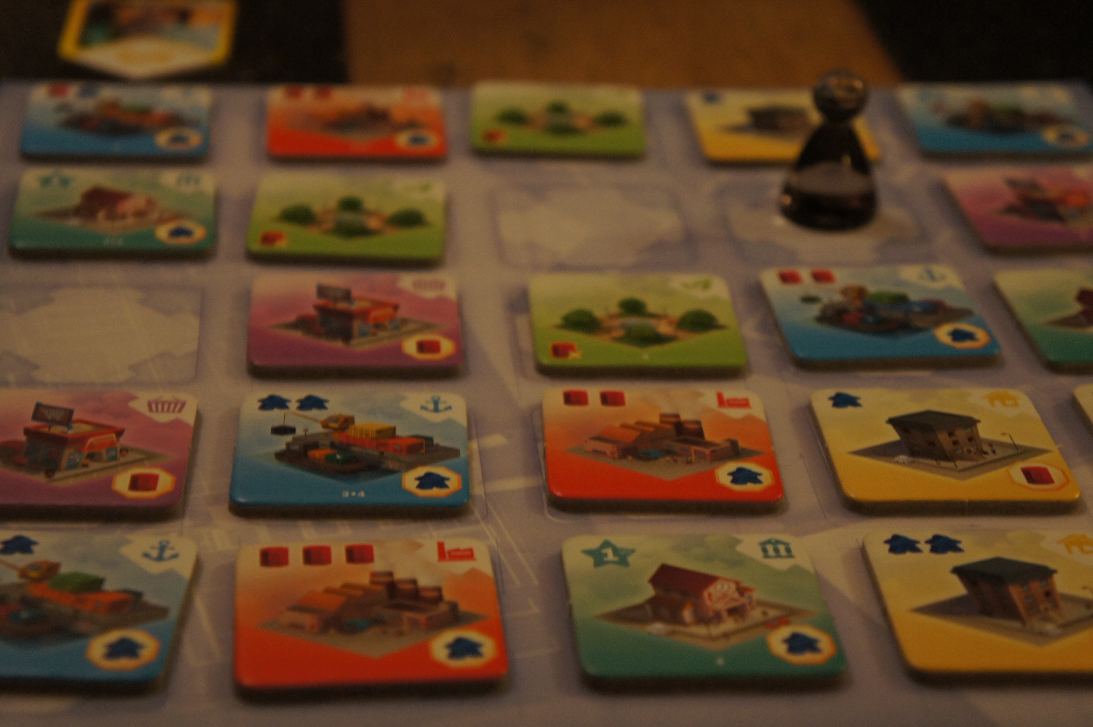 Tout le sel du jeu est dans la recherche d’optimisation de sa ville. Quelle sera la tuile accessible qui me rapportera le plus de points, sans pour autant me bloquer pour les prochains tours ? Superbe jeu d’optimisation, très tactique. Mais là ou il marque perd un peu de son côté stratégique et profond, il est très difficile de prévoir ce qui nous sera encore disponible dans les prochains tours. Il est aussi très difficile de bloquer les autres joueurs. Dommage pour l’aspect « profondeur » et l’aspect interactif. Ce ne sont clairement pas les points les plus forts du jeu. On ne ressent pas de montée au puissance au fil des tours. Il est assez linéaire dans son déroulement.