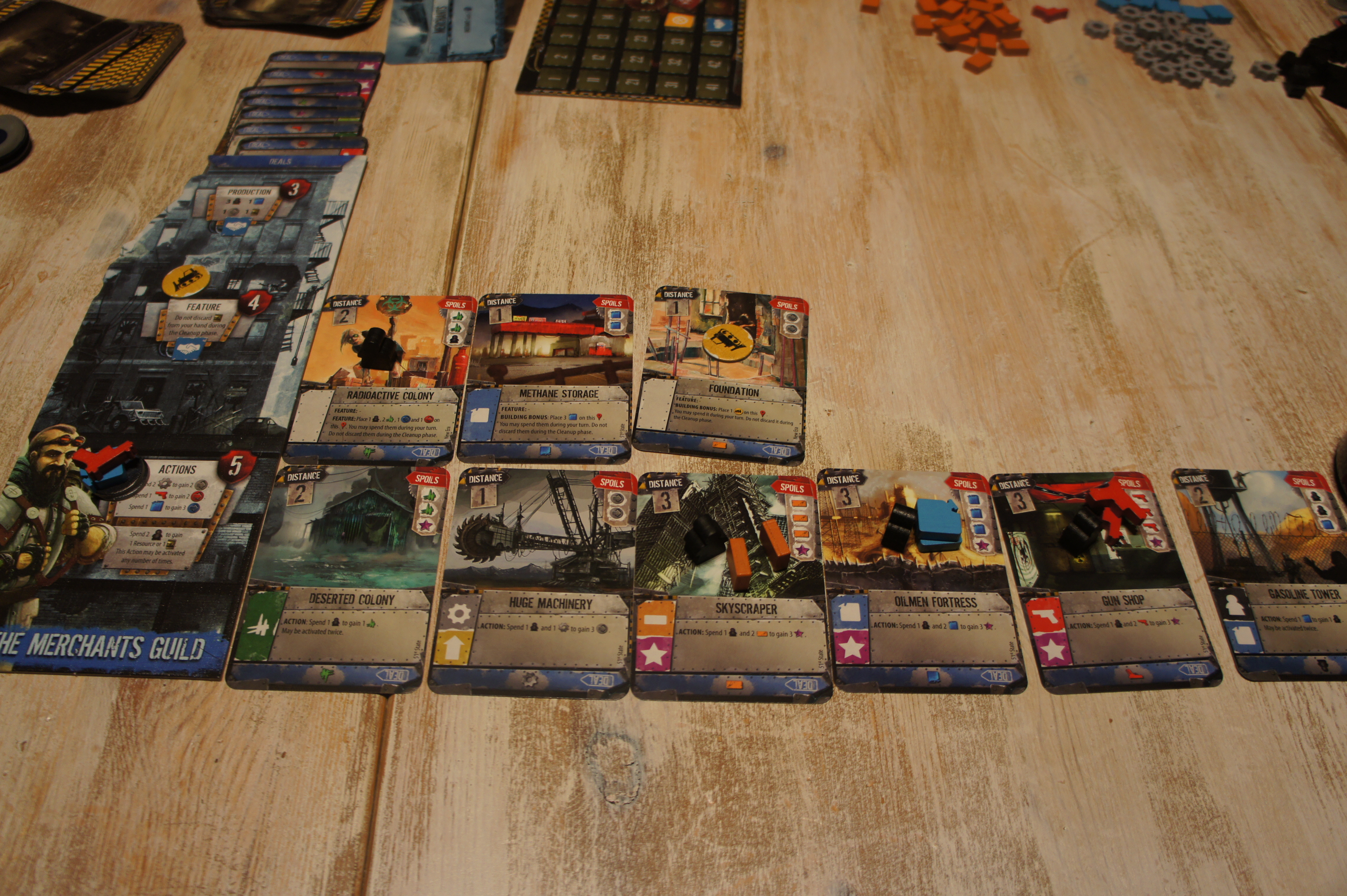 D’un côté on a un jeu de cartes assez léger où l’on obtient des cartes soit en les piochant au hasard tout simplement, soit en les draftant au début de chaque tour.  Ces cartes vont nécessiter des ressources pour être construites et vont apporter certains bénéfices que ce soit en transformation de ressources, en PVs ou en habilités.SONY DSC