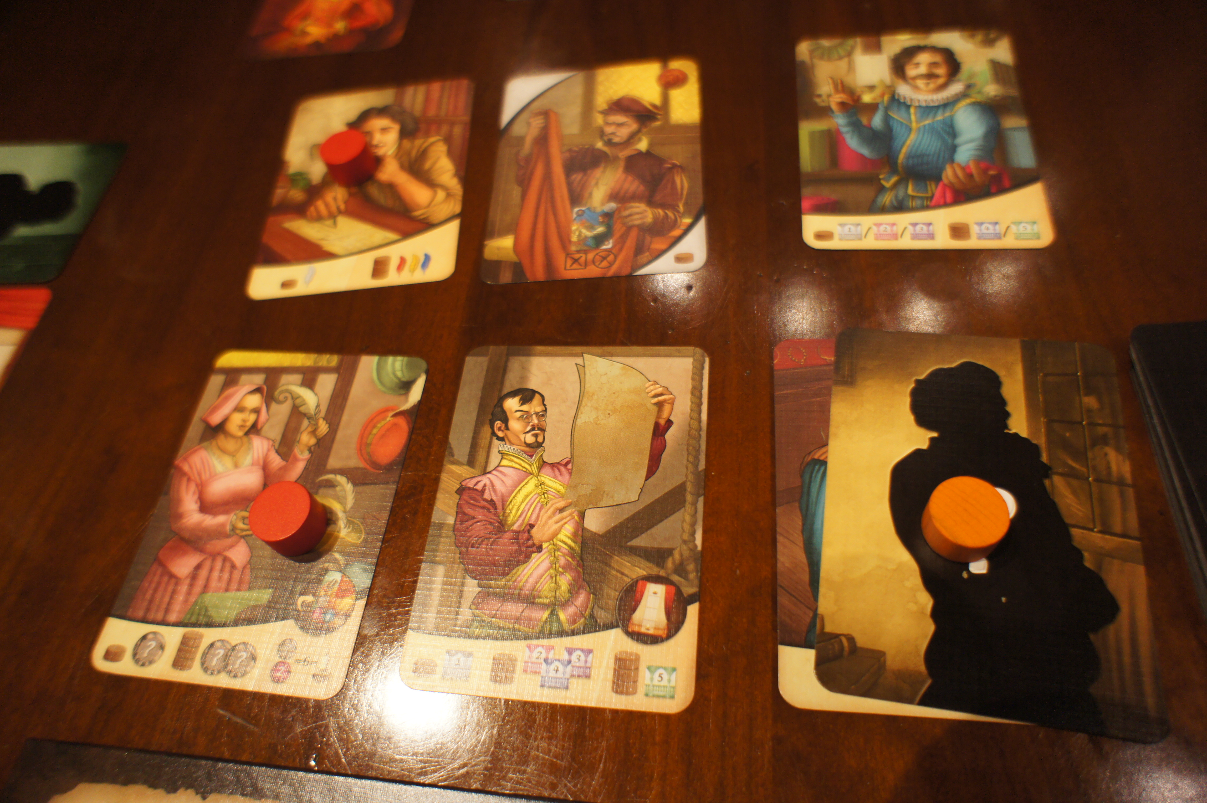 Avec les coulisses, les choix sont encore plus cornéliens car on va vouloir se réserver des jetons action pour réaliser certaines actions intéressantes en coulisse. Et en coulisse, il va vous falloir aussi agir avant vos adversaires pour vous réserver les cartes les plus intéressantes. Cette variété nouvelle va également amoindrir l’importance des cartes artisan de valeur 8 car les choix sont encore plus nombreux. La bataille pour la première place trouvera un dynamisme nouveau car il sera encore plus intéressant de miser moins de jetons action. Les stratégies gagnantes sont encore plus variées. J’ai déjà vu un joueur l’emporter alors