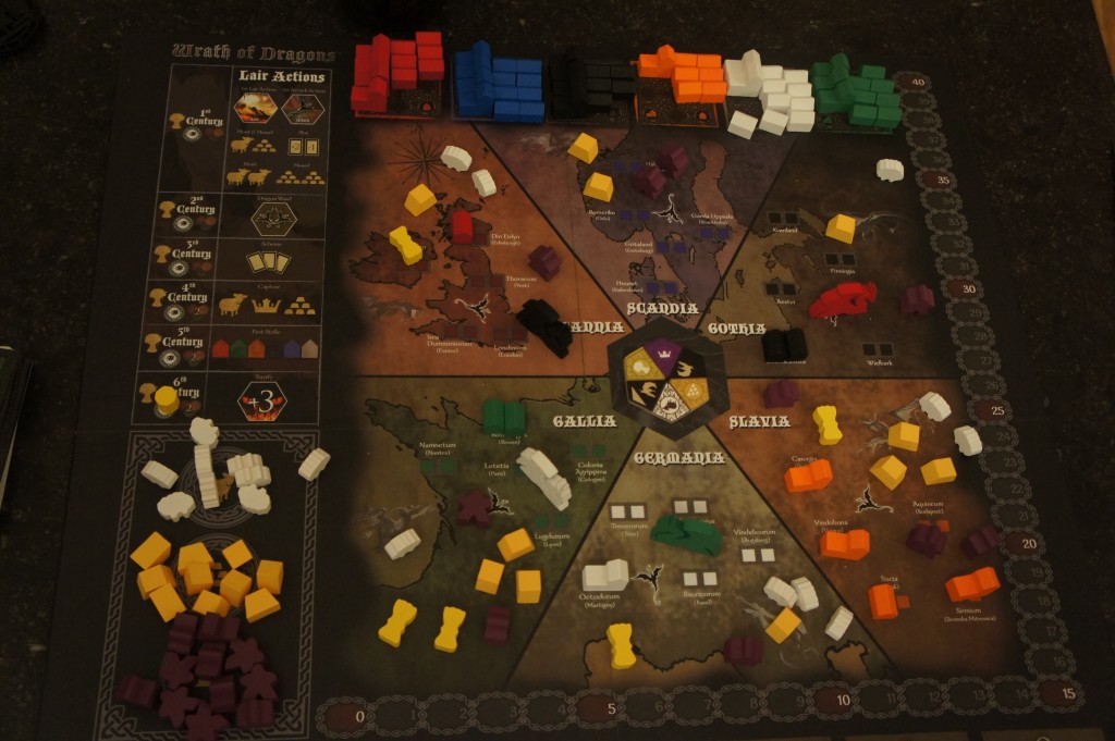 sont prévisibles et logiques. Très étonnant et surprenant pour un jeu Américain qui garde pourtant les qualités indispensables de sa nationalité: un thème bien présent et un matos génial. Tout ceci lorgne du côté Européen avec insistance et pour notre plus grand plaisir. Wrath of Dragons nous offre une triple claque et mieux vaut ne pas être sous la colère des dragons qui restent les animaux légendaires les plus dévastateurs!