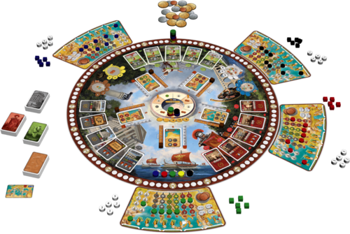 Ave Roma est un jeu de placement d’ouvrier avec une mécanique originale qui nous tente bien.  Il présente un plateau rond ce qui m’a toujours intrigué.  En plus, comme il est édité par nos amis de PixieGames, on se doit d’aller voir ça 😉