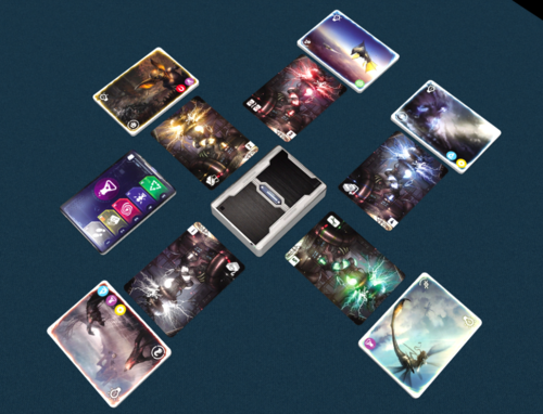 1337 Essen 7 Multiuniversum 1Multiuniversum (à vos souhaits 😉 ) est un petit jeu de cartes à paraître chez Board & Dice mêlant draft et pick up & Delivery.