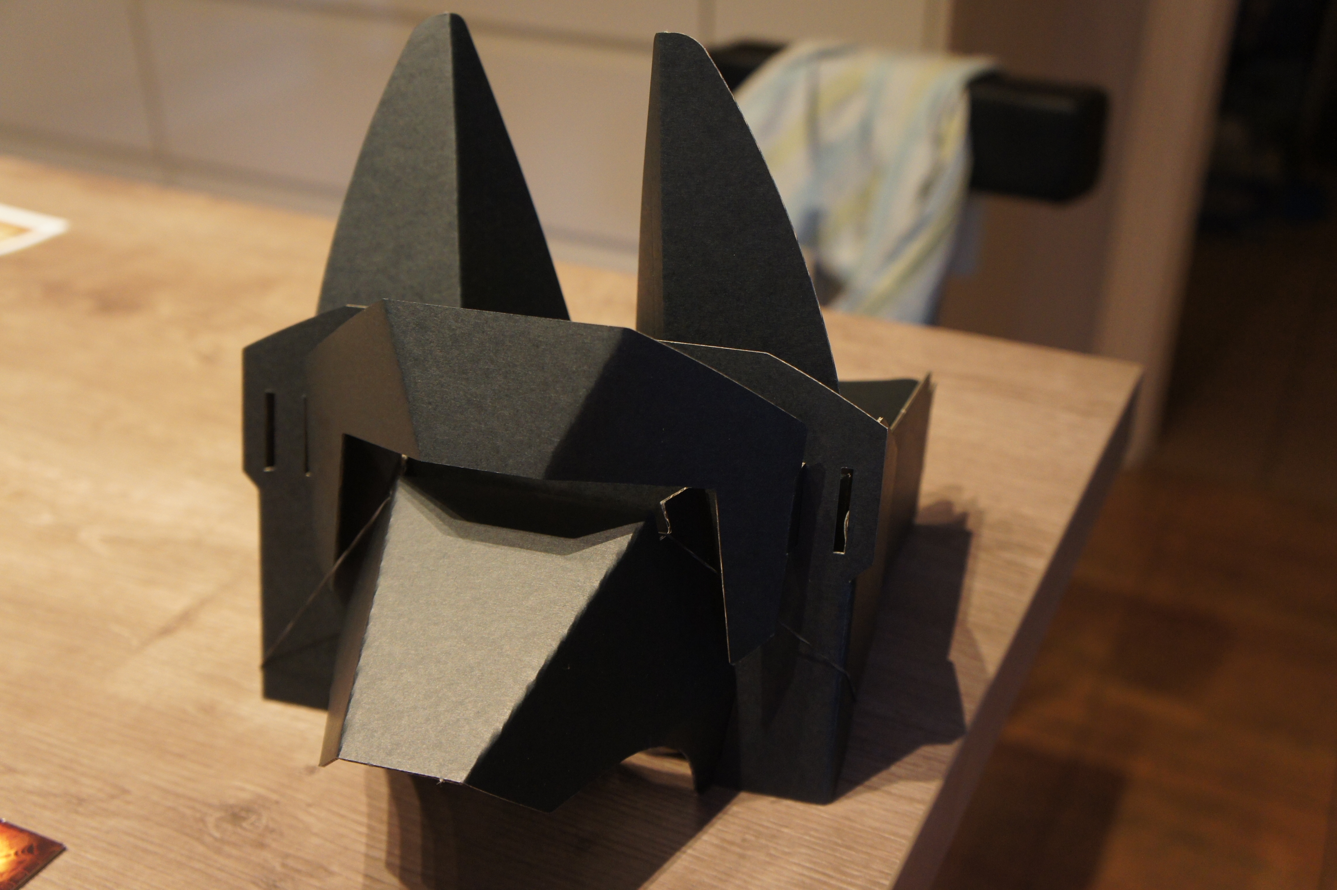 Tout commence par la construction du masque d’Anubis.  Aucun souci avec les règles qui sont en Anglais, mais l’aide à la construction du masque est en Japonais.  Il va falloir vous fier juste aux schémas.  C’est un peu fastidieux, mais on y arrive.  Ce masque est magnifique même si ses composants ne sont pas aussi bien attachés que ceux de l’exemplaire Colt Express.  Il vous faudra de temps en temps réassembler les parties qui se détachent mais c’est un moindre mal vu le plaisir ludique nouveau qu’apporte Mask of Anubis.