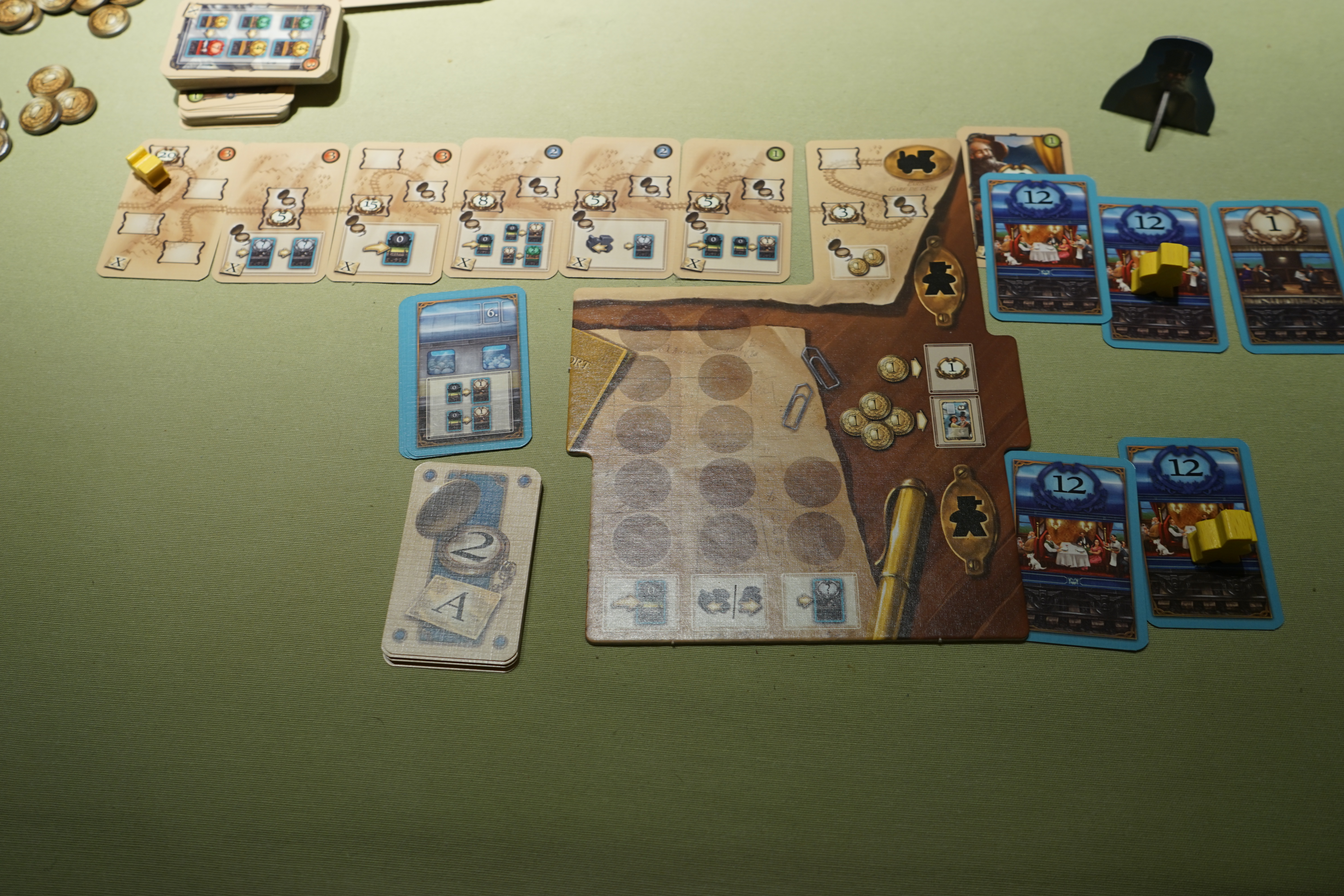 La première chose qui frappe dans First Class est sa mécanique centrale de choix de cartes. Il ne s’agit pas d’un jeu de choix d’action mais de choix de cartes. Vu que chaque carte représente une ou plusieurs actions, cela revient au même me direz-vous. Oui et non vous répondrais-je vu que la majorité de ces cartes sont différentes…