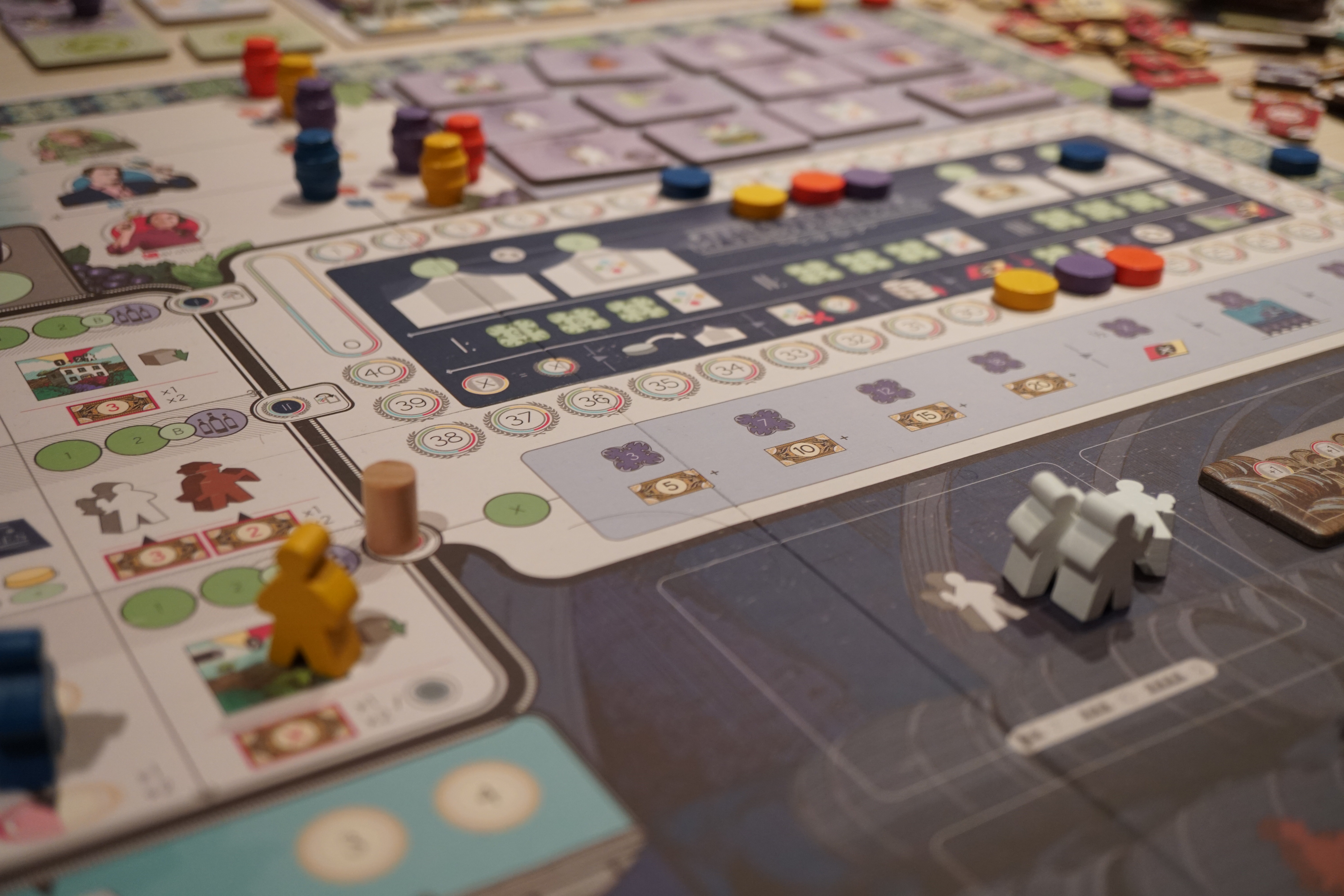 13 tours de jeu avec, à chaque fois, un choix entre 8 à 9 actions, entrecoupés de phases de production et de décomptes intermédiaires lors des foires aux vins, font de Vinhos un jeu hyper complet et complexe avec une multitude de stratégies et, à chaque tour, un choix tactique à gérer.