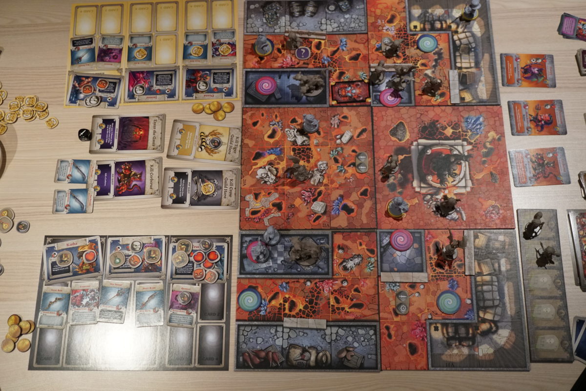 Tout d’abord, il faut préciser que le jeu n’est clairement pas fait pour la configuration 2 joueurs malgré ce qui est marqué sur la boite. Il y a un aspect aléatoire indéniable dans Arcadia Quest Inferno et cela peut fortement déséquilibrer le jeu. Une joueuse peut, à l’aide d’un peu de chance, prendre réellement le dessus sur l’adversaire et l’emporter aisément sans que l’autre ne puisse rien faire.