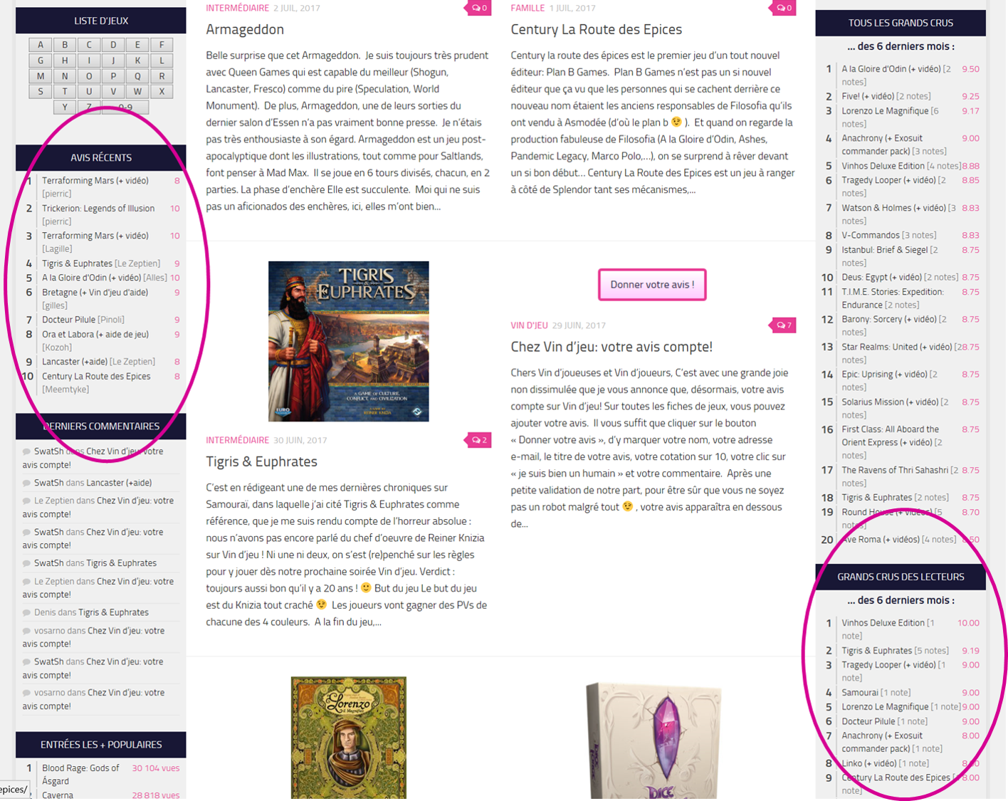 Pour le moment, vous pouvez voir les avis donnés sur les fiches publiées ces 6 derniers mois sur la colonne de droite de Vin d’jeu dans les grands crus des lecteurs.  Mais nous voulons vous donner plus de visibilité.1558 Avis 4
