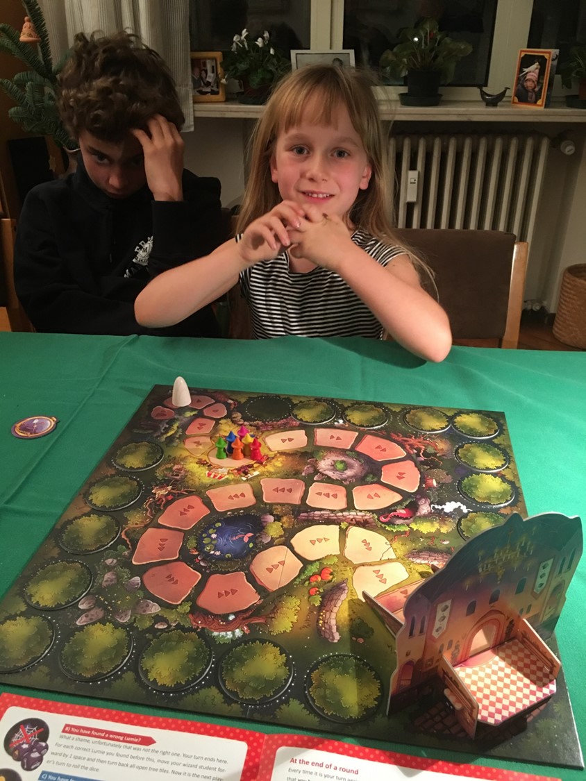 C’est un super jeu pour enfant au plateau magnifique et attrayant. Le découpage en une partie collaborative, ou on apprend, et un final solitaire plus tendu est très réussi.