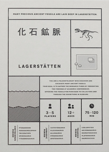 Lagerstätten, malgré un nom à la sonorité Allemande, est un jeu Japonais qui sera présenté au prochain salon d’Essen. Nous sommes des paléontologues qui allons réaliser des fouilles pour découvrir les plus beaux spécimens de dinosaures afin de gagner un max d’argent. Oui, c’est le nerf de la guerre 😉