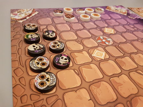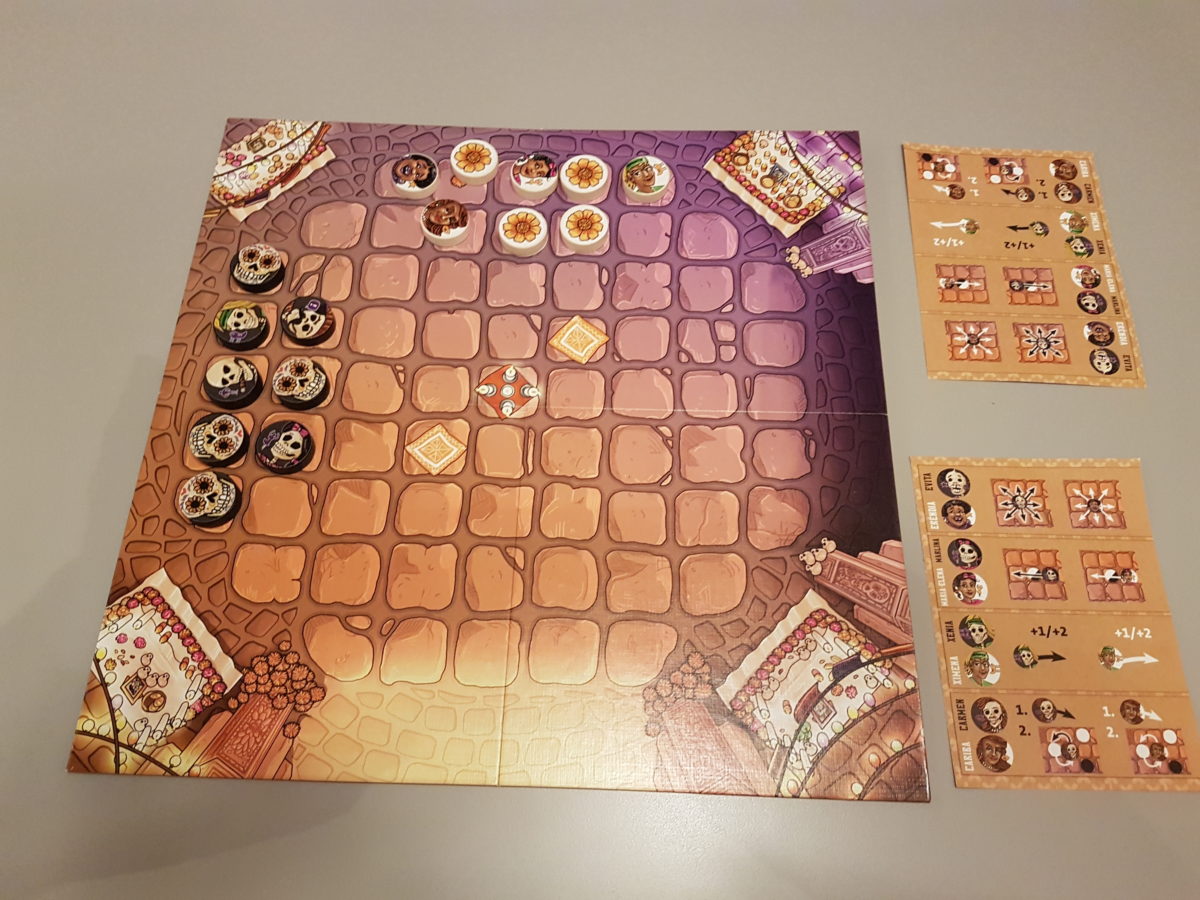 Ce choix de 4 pions pourra être fait au hasard, mais il est beaucoup plus intéressant en mode expert, où chacun en choisit un l’un après l’autre. Ainsi Adios Calavera devient non seulement tactique, mais plein de rebondissements.