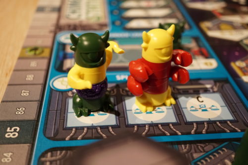 Monter, démonter, transformer ses personnages sera donc la touche originale du jeu. Le second intérêt est la construction de la station, venant ajouter petit à petit de nouveaux choix d’actions au jeu. En fin de partie, on aura probablement le choix entre une bonne trentaine d’actions… Cela veut dire que le jeu s’adressera plutôt à un public amateur de jeux costauds. Le reste du jeu sera plus dans le classique jeu de placement/ressources/action/points de victoire. On gardera même la sempiternelle nécessite de nourrir ses ouvriers… Avec un tel thème, il aurait pu faire un truc plus innovant.