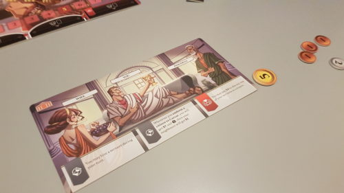 Enfin, on peut aussi activer des personnages présents, dès le départ, sur notre plateau individuel, dont l’un apporte beaucoup d’argent ! Argent qui servira ensuite à corrompre ou embaucher. Seulement voilà, il ne s’active que si l’on envoie un personnage du côté de César !