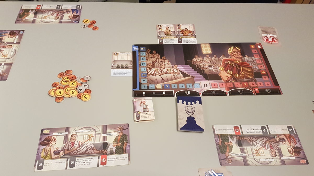 Bien entendu, personne ne dira rien sur son rôle et tentera de gagner la partie. Pour ce faire, il faudra, pour l’Agent que l’influence tende en faveur de César. Pour les autres, il faudra qu’ils aient le plus d’influence personnelle, représentée par des jetons, et que, bien sûr, l’influence centrale soit contre César.