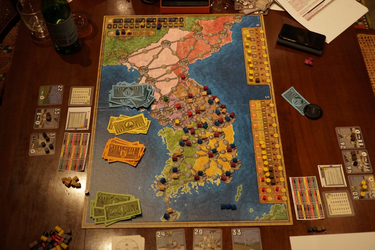 Le reste du jeu est plus automatique puisqu’après cette phase d’enchères, les joueurs vont pouvoir acheter des ressources pour faire fonctionner leurs centrales puis les construire sur les villes.