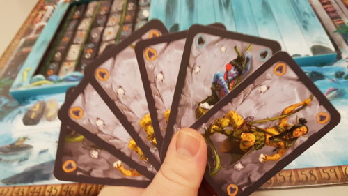 Il faudra choisir son emplacement judicieusement, tout d’abord en fonction des cartes que l’on a, bien sûr, mais aussi dans le but d’obtenir à la fois une majorité dans la colonne pour des points de victoire et une majorité en ligne pour obtenir le jeton bonus qui se trouve au bout de celle-ci.