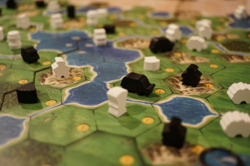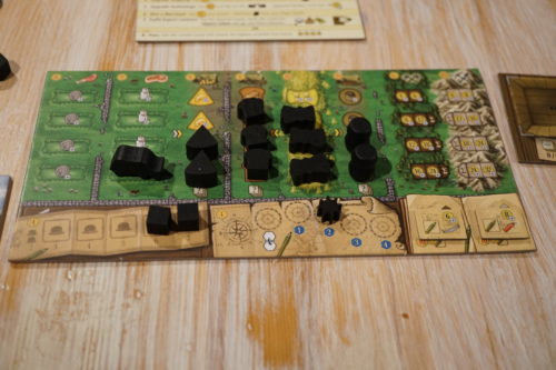 Alors oui, l’argent est important et on finit tous par avoir placé ses bûcherons et mineurs sur le plateau mais ce n’est pas la première chose à faire. En effet, placer les autres « Meeples » est aussi important et permet aussi de gagner de l’argent (en passant par le marché). La tension dans le placement est également excellent. En effet, il est important de se garder des passages un peu partout afin de pouvoir continuer à s’étendre.