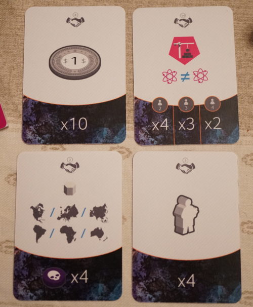 Prenons l’exemple de l’objectif secret « engager 4 scientifiques ». Lorsqu’un joueur va vouloir engager un scientifique, il est fort à parier que celui possédant cet objectif lui dise: « non, ne le fais pas, j’en engagerai un moi-même ». Hors ce sera probablement moins efficace mais le joueur va devoir accepter la proposition…