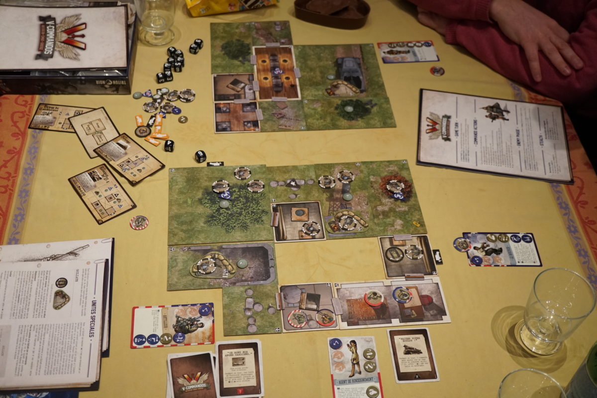 Il faut dire que le jeu retranscrit très bien le thème des commandos de la seconde guerre mondiale. De plus, son hasard limité permet pas mal de choix tactiques cruciaux. En discuter le long de la partie coopérative entre joueurs est en régal. Surtout que ces choix sont nombreux et on est régulièrement surpris de l’inventivité de nos partenaires. Nous sommes aussi toujours autant déchirés entre les options possibles.