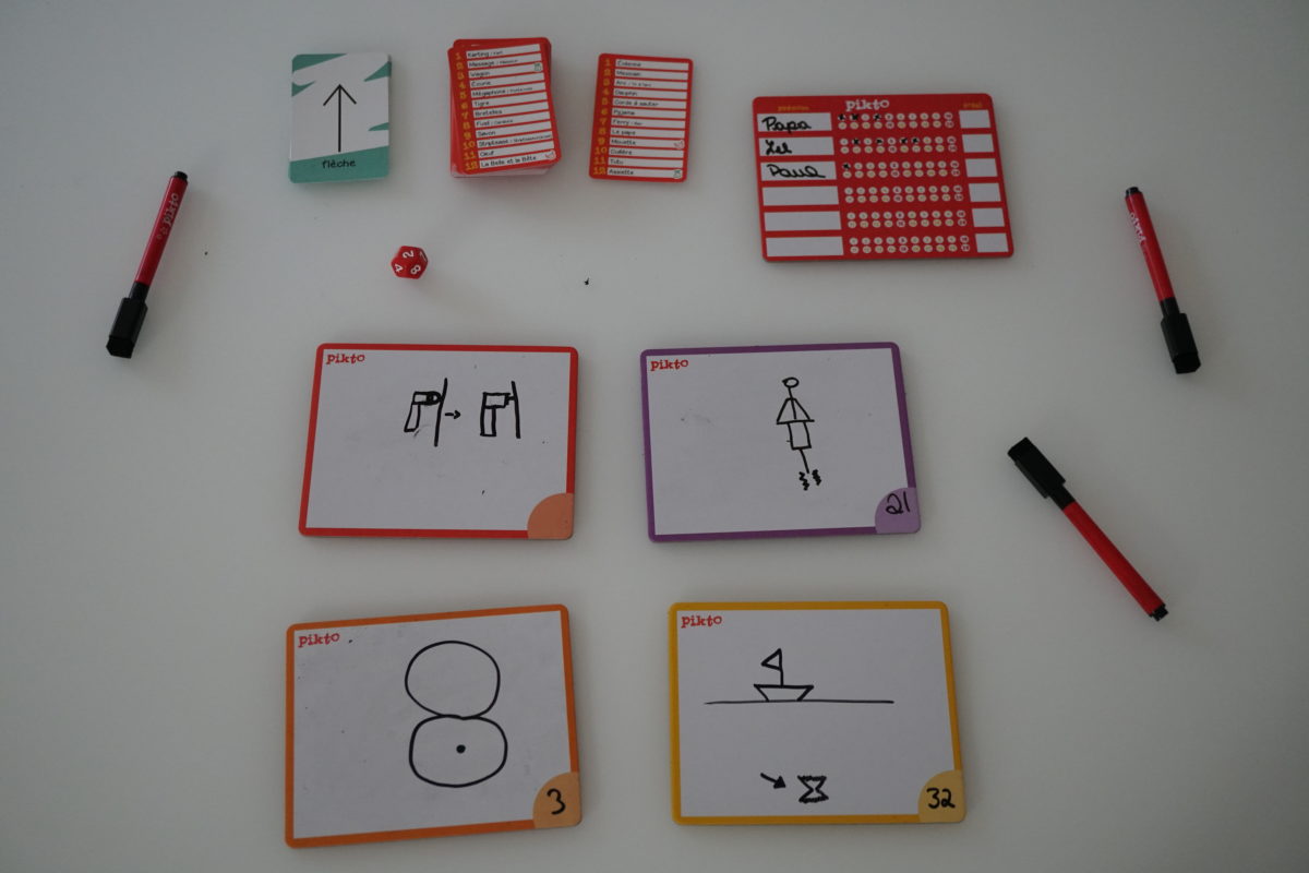 Quand tout le monde a terminé, la joueuse ayant utilisé le moins de traits + cercles montre son dessin en premier. La « devineuse » doit alors donner un mot. Si elle trouve, elles marquent toutes deux des points, sinon, la joueuse restante ayant utilisé le moins de traits + cercles montre son dessin à son tour. Et ainsi de suite jusqu’à ce que tout le monde ait montré son dessin ou à ce que la « devineuse » devine 🙂