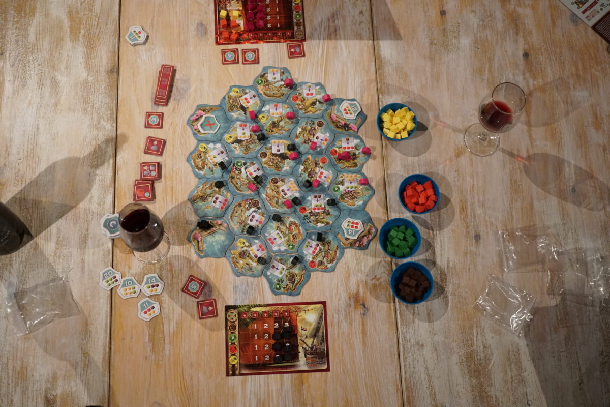 Quelques plus dans ce deuxième volet: il faut installer des comptoirs sur les îles avant de pouvoir effectuer l’action qui y est associée. Les actions sont similaires à celles que l’on retrouve dans le premier volet. Le déplacement de bateaux coûte également des ressources (au delà de la première île). Les comptoirs des joueurs sont disponibles sur le plateau individuel. Ici aussi, on peut glaner quelques PV, en libérant les comptoirs d’une colonne.