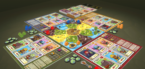 C’est le cœur du jeu où les joueurs vont acquérir des cartes, y placer des meeples pour les activer et exécuter autant d’actions libres qu’ils désirent. Vous allez principalement déplacer un meeple sur la carte pour éventuellement attaquer. L’attaque est assez simple: on compare les cartes et les bonus de chaque belligérant et le plus fort l’emporte 🙂 . Attaquer une forteresse peut rapporter bonbon 🙂