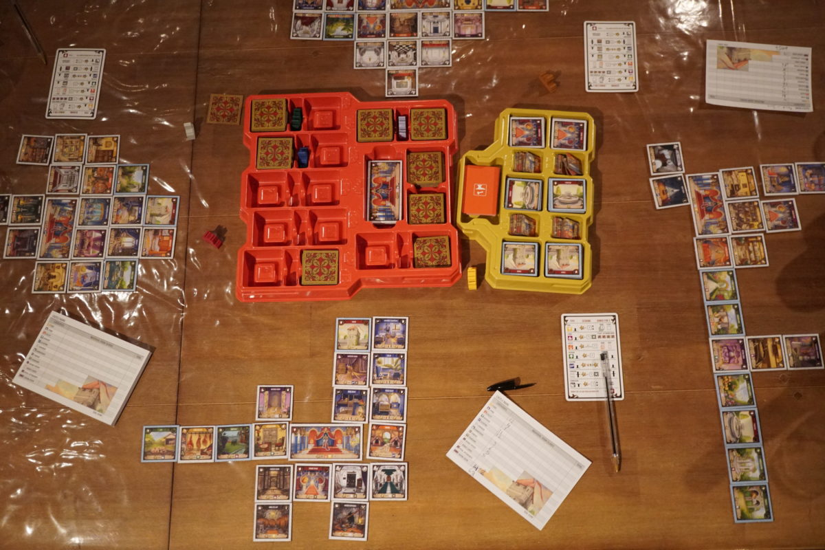 Le fait que les 2 auteurs du jeu soient également les auteurs de Between Two Cities n’est pas innocent tant les deux jeux sont proches. Au lieu d’être un jeu situé entre les 2 univers comme annoncé, je dirais plutôt que Between Two Castles of Mad King Ludwig est une variante de Between Two Cities avec quelques éléments repris de Castles of Mad King Ludwig.