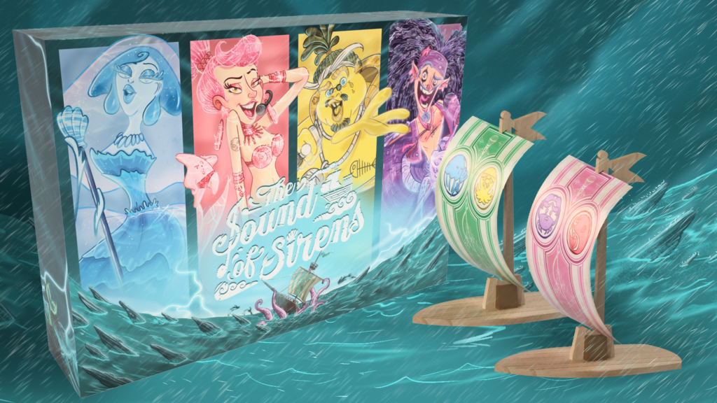 The Sound of Sirens est un jeu de course de bateaux (très jolis d’ailleurs) à l’aide de cartes, très interactif et peuplé de monstres marins. La campagne a dépassé 100%. Le jeu sera donc bien publié et les règles seront disponibles en Français (le jeu est langage indépendant). The Sound...