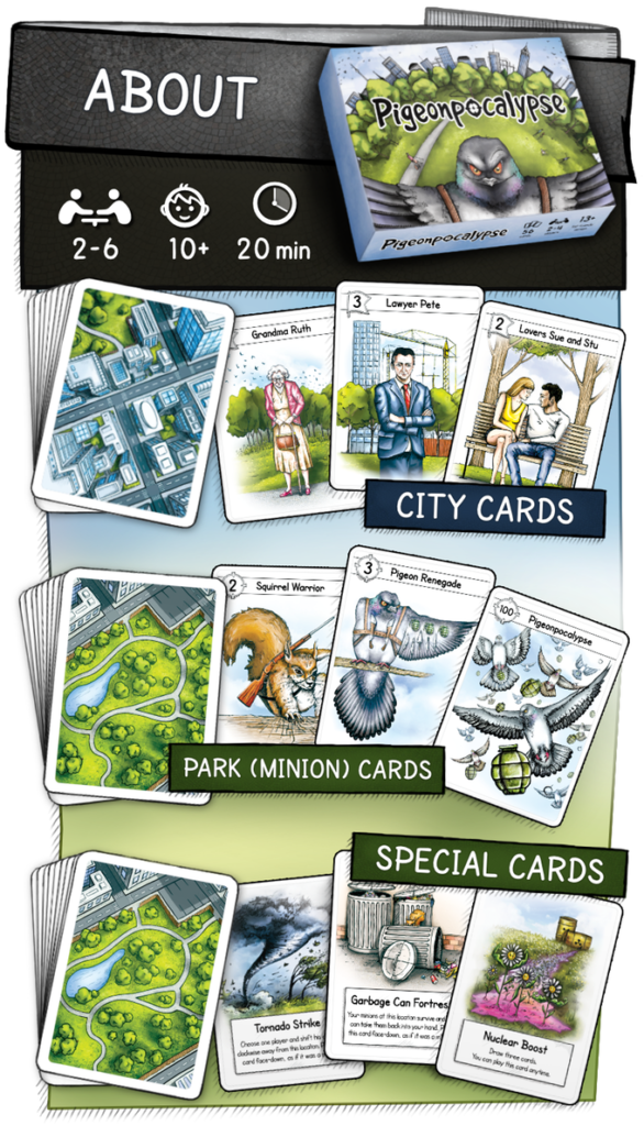 Pigeonpocalypse vient d’être lancé sur KS ici. Il s’agit d’un jeu de cartes assez léger, avec pas mal d’interaction et de bluff dedans. Le jeu est en Anglais mais une traduction Française des règles est prévue. Ils ont également prévu une extension nommée « NSFW – adult friendly » d’un goût assez...