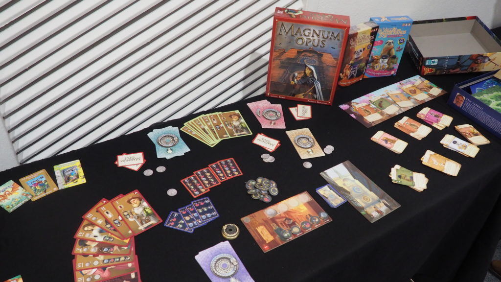 Magnum Opus, disponible (ou prochainement) chez Gigamic. Un jeu de draft de cartes dont le deck est limité à 9 cartes. Seules 6 d’entre elles seront jouées. Vient ensuite un calcul de majorité pour savoir quel joueur bénéficiera du pouvoir. Affaire à suivre.