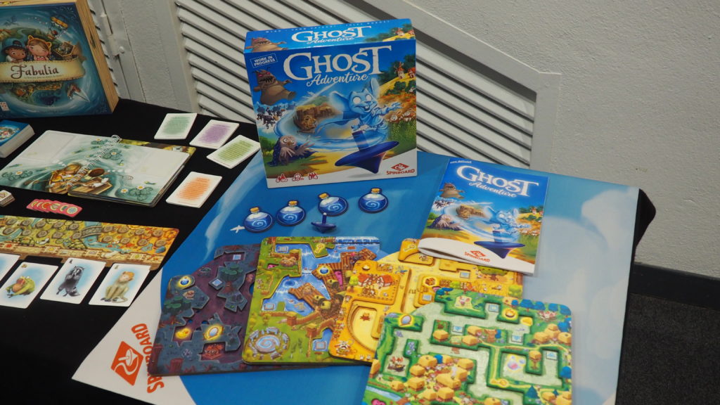 Ghost Adventure: je n’ai pas eu le temps de le tester mais j’ai bien aperçu quelques joueurs tenter le coup. Un jeu de toupies où il faut faire suivre le chemin à la toupie et même la passer à un autre joueur qui attend avec un autre plateau. Ca a le mérite d’être original!