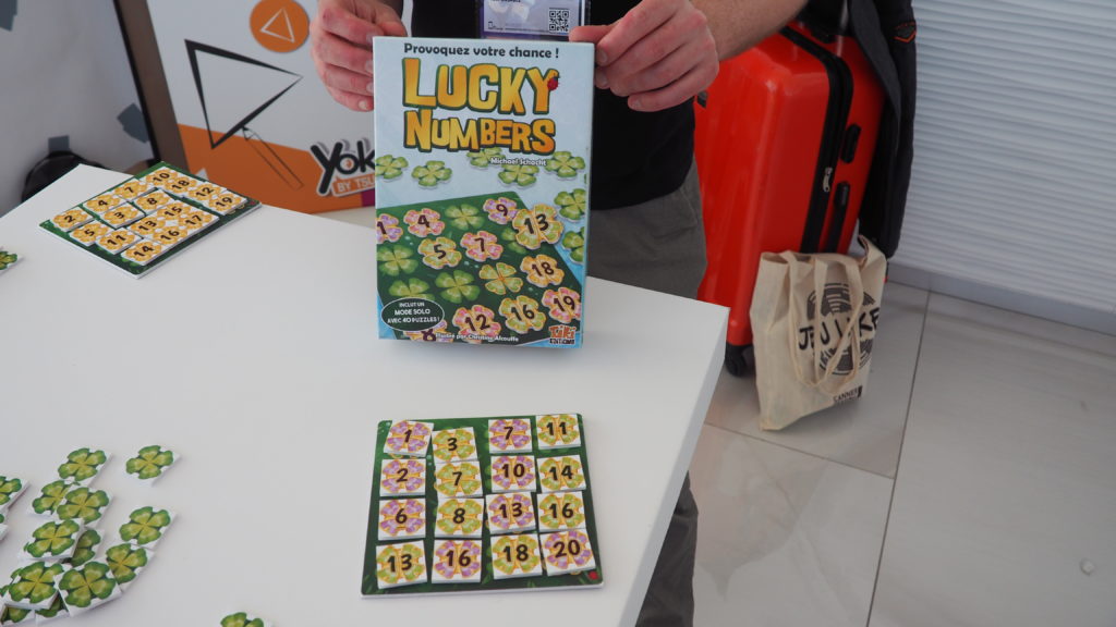 Tiki Editions m’a expliqué rapidement une prochaine sortie, Lucky Numbers, de Micheal Schacht. Le jeu est simple et addictif. On pioche une tuile et on la place sur son plateau en sachant que les chiffres doivent être croissant pour chaque ligne et chaque colonne. Quelques astuces rendent le jeu moins linéaires (échanger une tuile, mais elle devient alors disponible pour les autres joueurs). Lucky Numbers, simple, rapide et efficace!