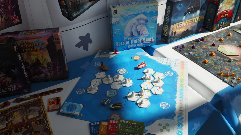 Aurora Games va rendre Rescue Polar Bears disponible en français dans pas trop trop longtemps. L’édition sera revue et rendue un peu moins difficile, tout en laissant le choix de jouer avec les règles originales. Un jeu coopératif où il faudra éviter de perdre des ours lors de la fonte des glaces! Il me semble bien prometteur!