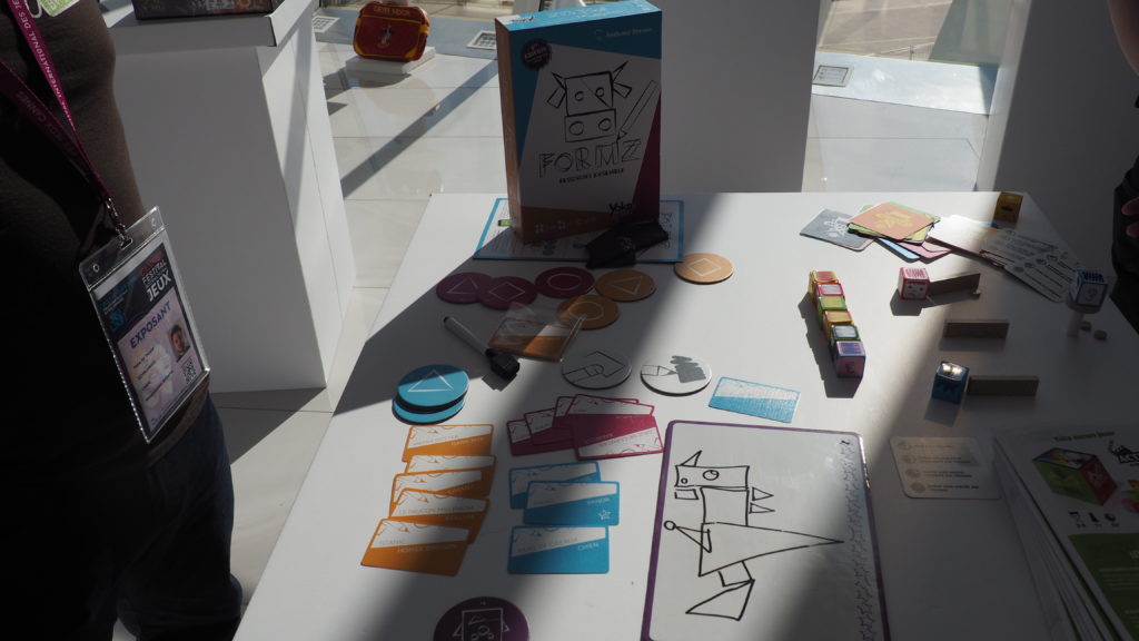 FORMZ de Yoka by Tsume où chaque joueur se voit attribuer une forme (triangle, cercle, carré, etc.). Les joueurs doivent à tour de rôle dessiner leur forme sur le plateau afin de faire deviner un mot. Le plateau passe ainsi de joueur en joueur, chacun dessinant uniquement sa forme. Cela promet de belles rigolades. Sortie prévue dans les mois à venir.