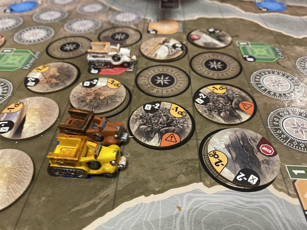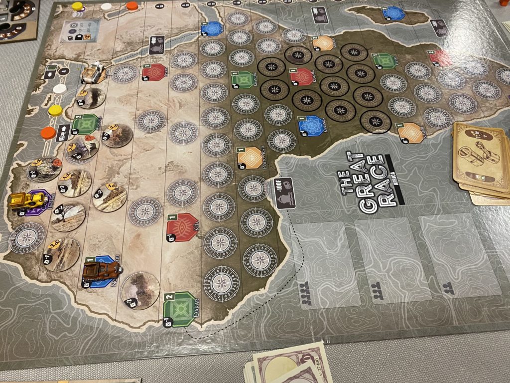 The Great Race, en démonstration. J’ai une la chance de faire quelques tours de ce magnifique jeu. Comme son nom l’indique, il s’agît d’une course de voiture. et on part du nord pour arriver dans le sud. Le jeu est rapide à prendre en main et est bien fluide.