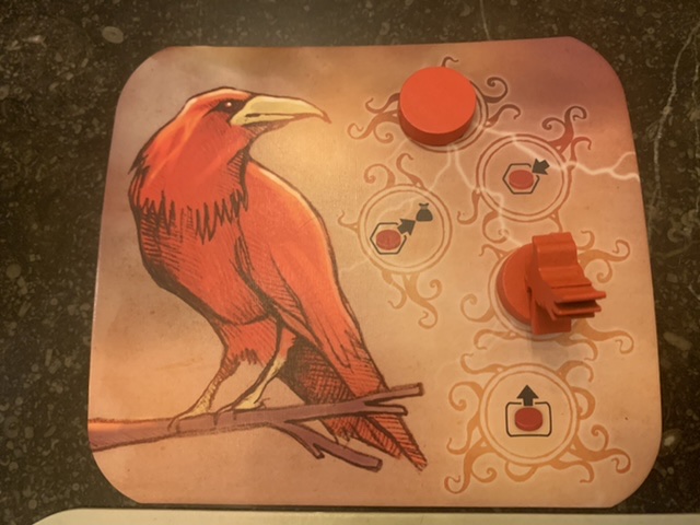 A nouveau cette extension est « costaude ». Il faut bien appréhender le fonctionnement de la Corneille, de la tuile tourment et du perchoir pour comprendre comment bénéficier au mieux des différents pouvoirs et enchaînements. Mais une fois bien compris cela permet clairement de multiplier les combos encore plus puissantes! Et deuxième caractéristique très claire, cette extension introduit une bonne dose d’interaction directe. Je me souviens de la discussion sur le sujet en réaction à notre chronique de Dreamscape, où certains se « plaignaient » (de manière fort courtoise et civile 😉 ) du manque d’interaction dans le jeu. D’autres (dont je fais partie) au contraire argumentaient que l’interaction indirecte était présente à tous les étages. La Corneille Rouge va mettre tout le monde d’accord. Interaction indirecte ET directe garantie! Le tout dans un thème toujours totalement respecté et un design toujours aussi magnifique.