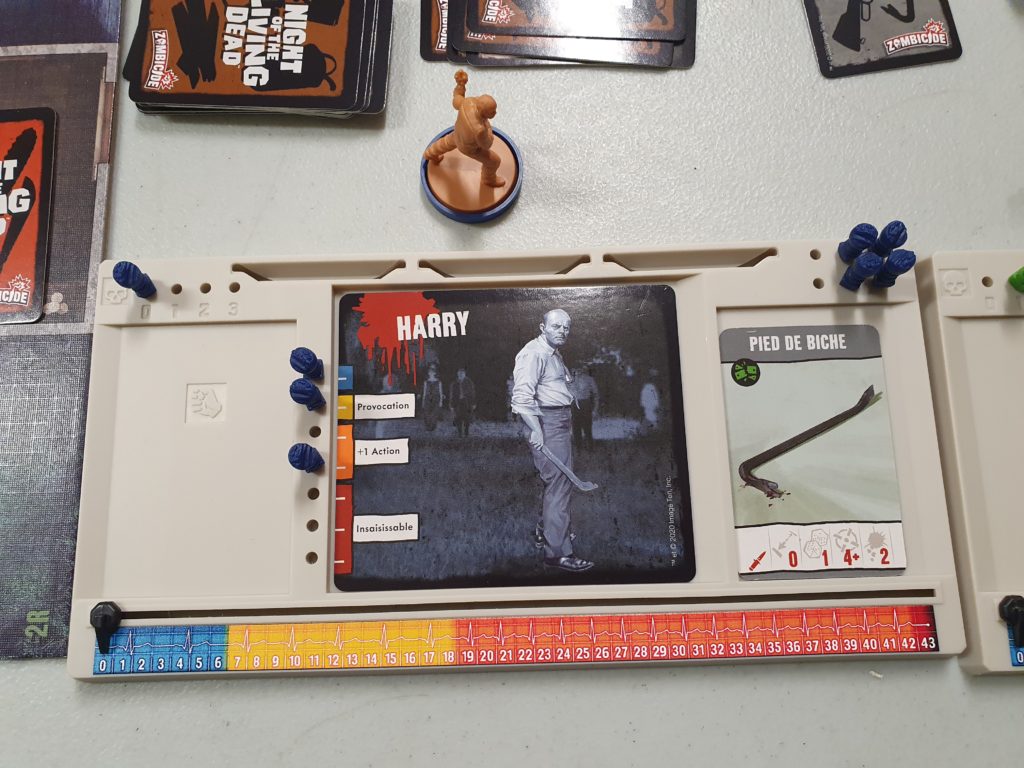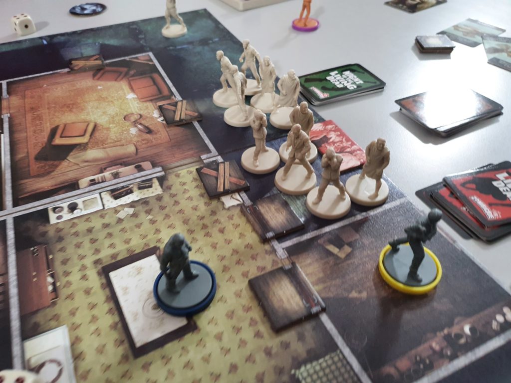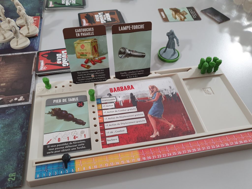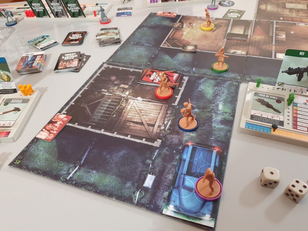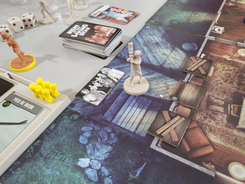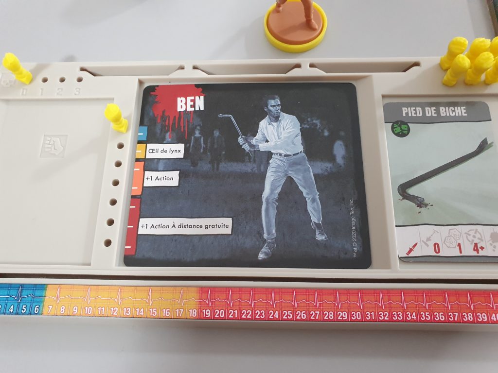 Avec The Night of The Living Dead, vous perdez immédiatement dès qu’un personnage meure suite à 3 blessures ! J’aime beaucoup ce changement. Les joueurs éliminés n’auront plus à patienter que la partie soit terminée par les autres. Et cela entraine beaucoup plus d’entraides entre les joueurs, vu que personne ne veut qu’il y ait une victime sous peine de défaite immédiate !