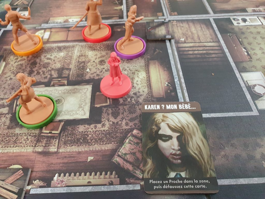 - Une règle originale qui bascule les personnages en mode ‘zombicide‘ (fort) et ‘Roméro‘ (faible) selon la présence de Johnny et/ou Karen.